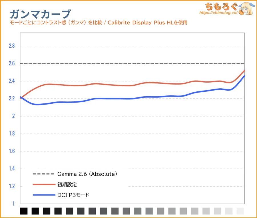 いつもどおり、キャリブレーター(測定機材)による手動調整も用意しました。以下の設定で、暗すぎる黒を持ち上げて、ニュートラルなグレーに修正できます。