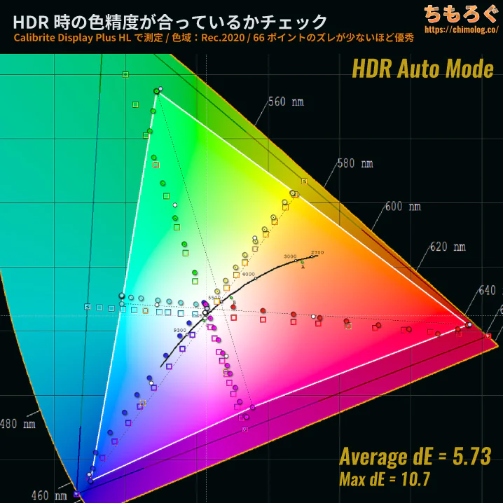 レポート記載どおり、本当に色精度が高いのか、実際に測定します。