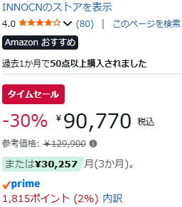 2026年2月時点、INNOCN 49C1Rの実売価格は約9.1万円(ポイント込み8.9万円)です。
