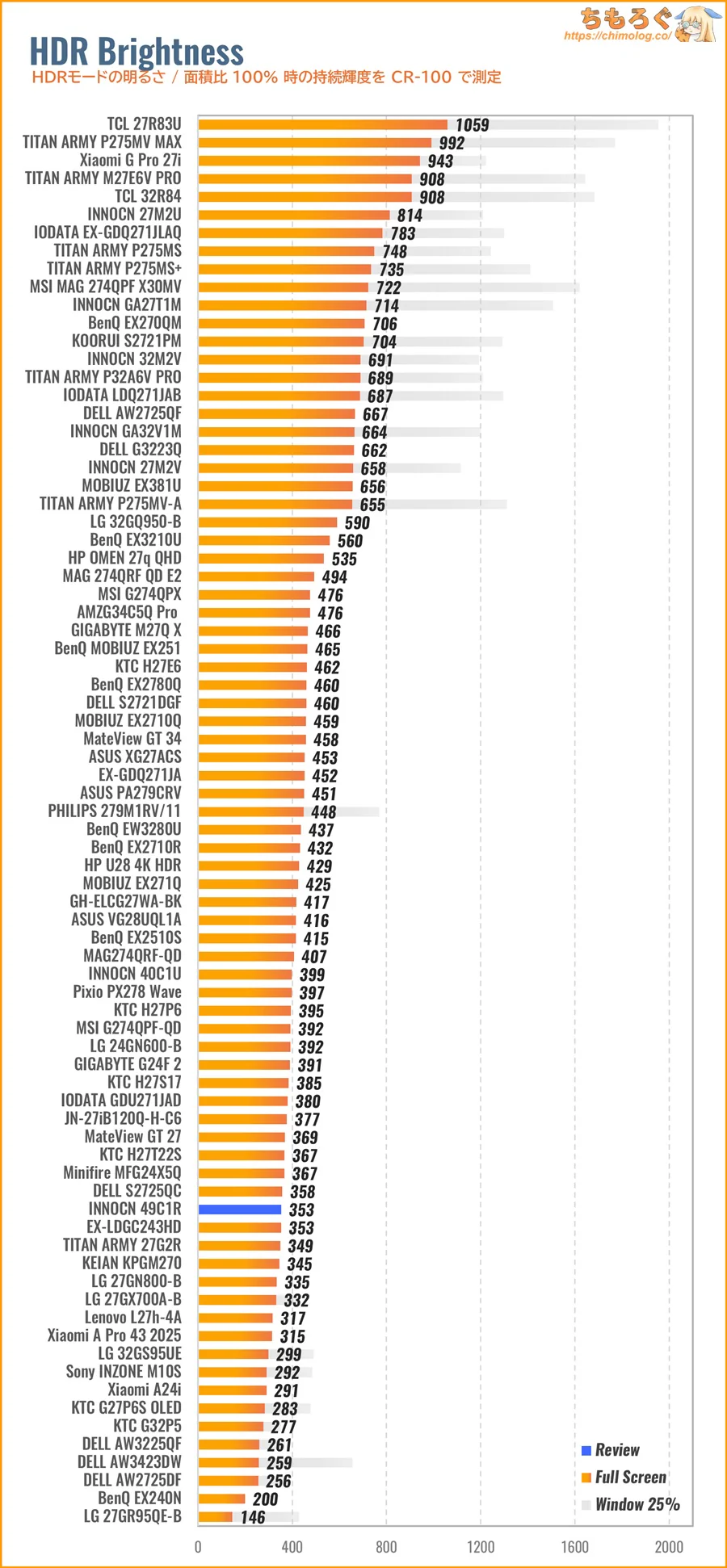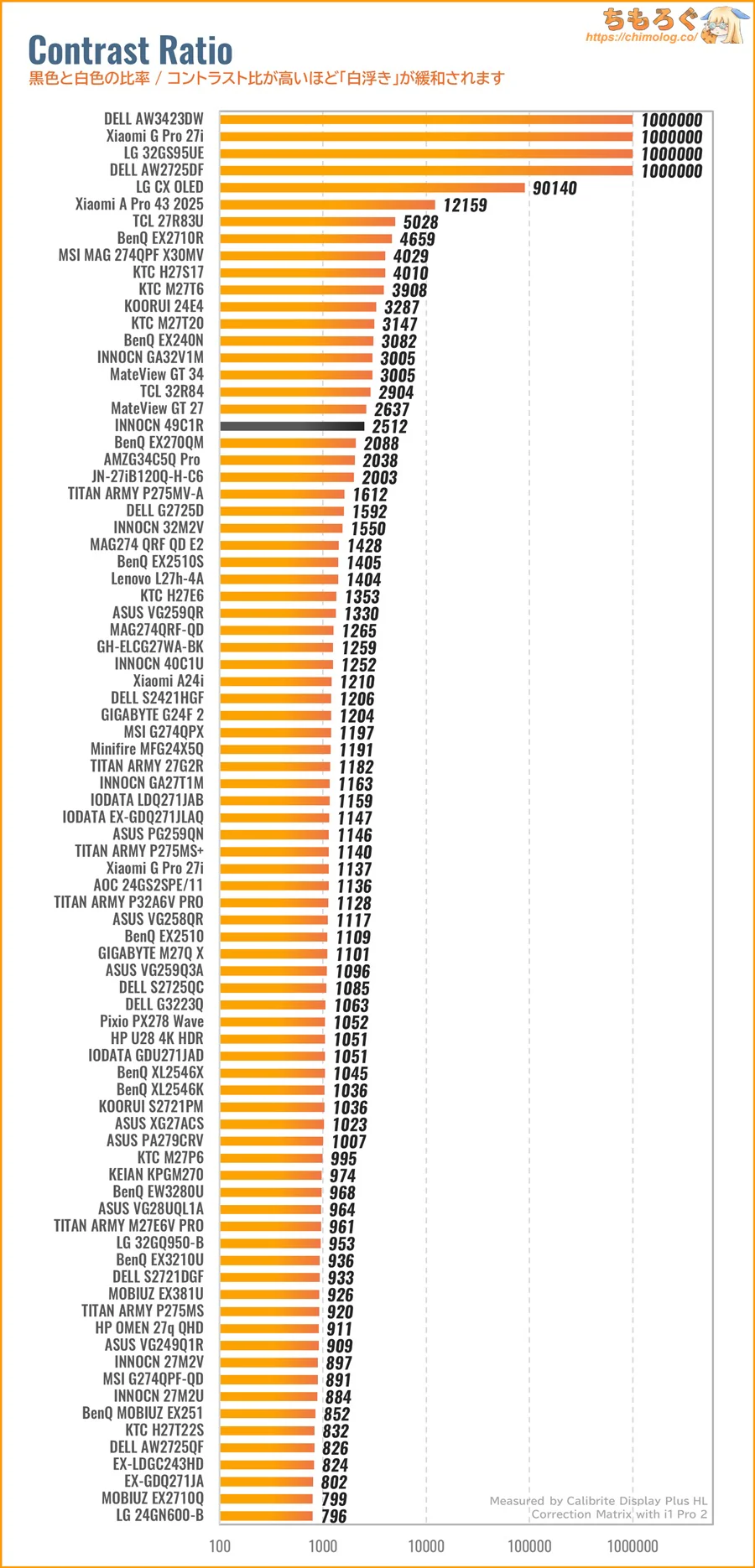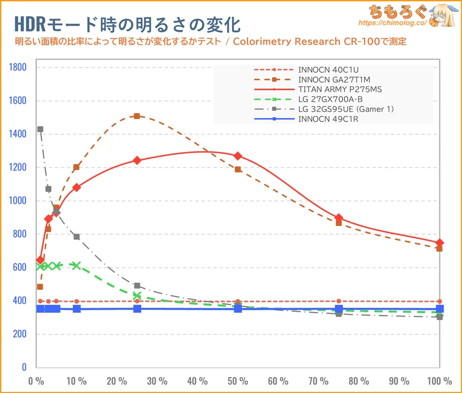 ちもろぐでは、2種類の測定機材を使って今回レビューする「INNOCN 49C1R」の画質を深堀りします。