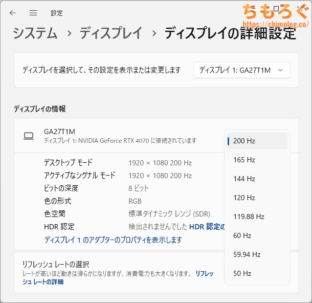 ただし、切り替えに約10秒くらいかかるうえ・・・肝心のリフレッシュレートに大幅な制限がかかります。25インチモードは最大180 Hzまで、フルHDモードは最大200 Hzです。