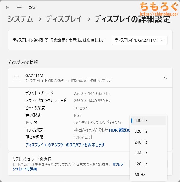| FPSやeSports(競技ゲーミング) 最大330 Hz対応で、応答速度もそこそこ速いです。 | |