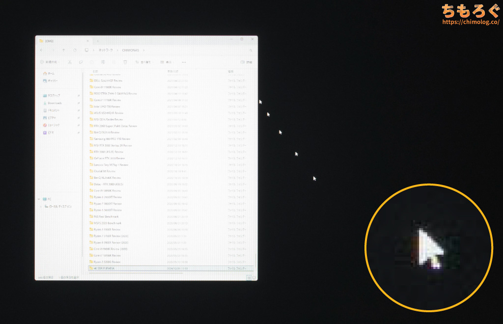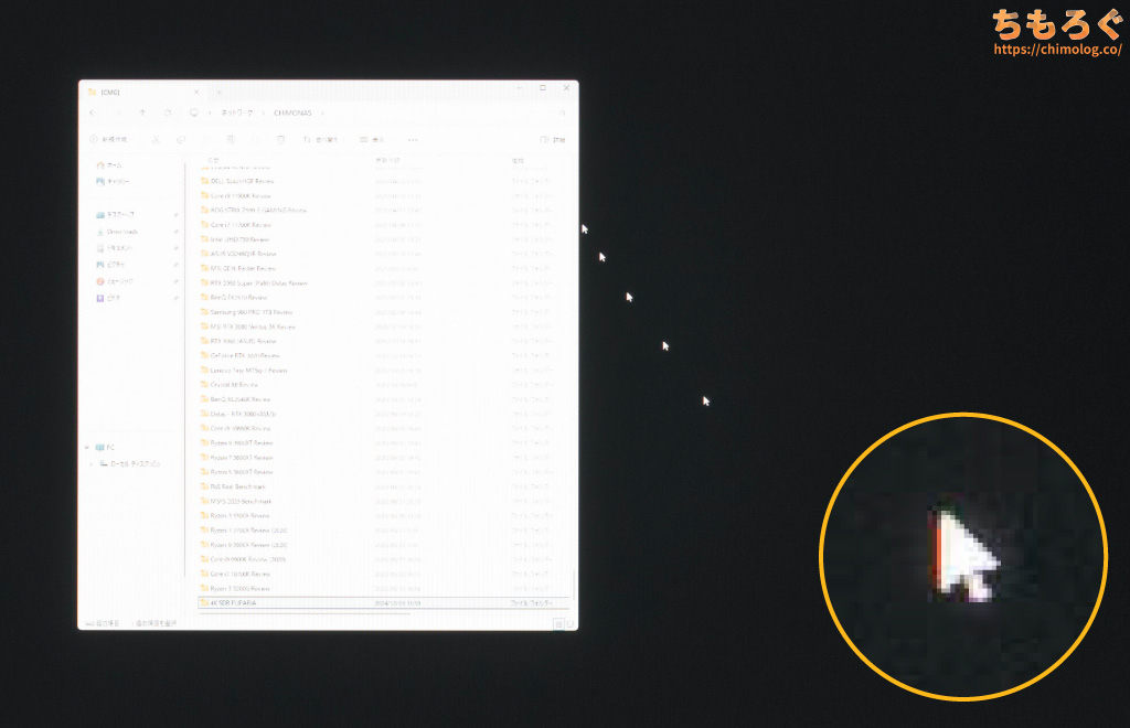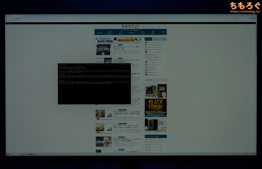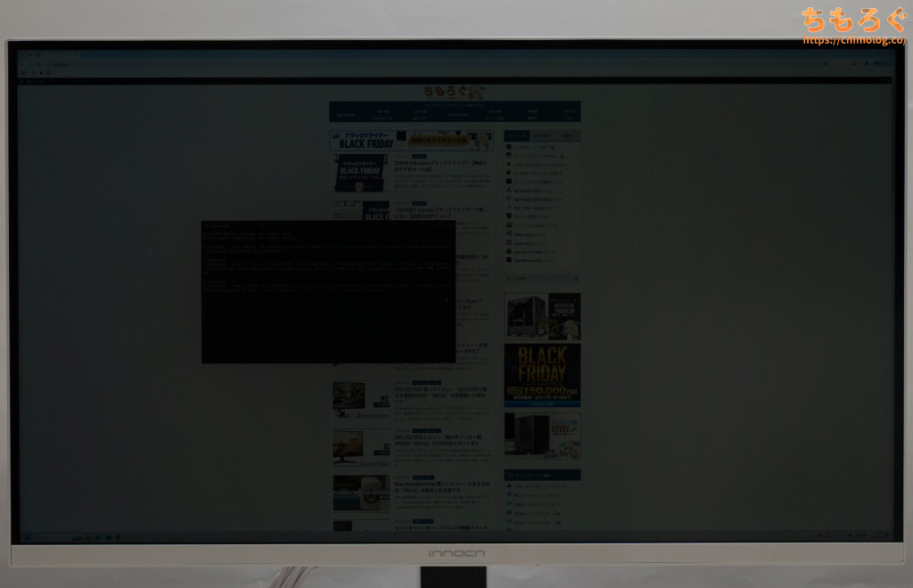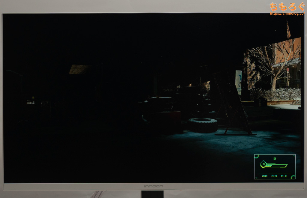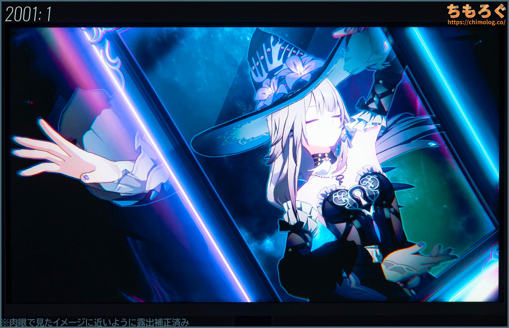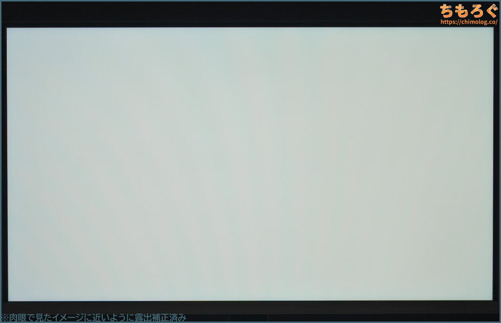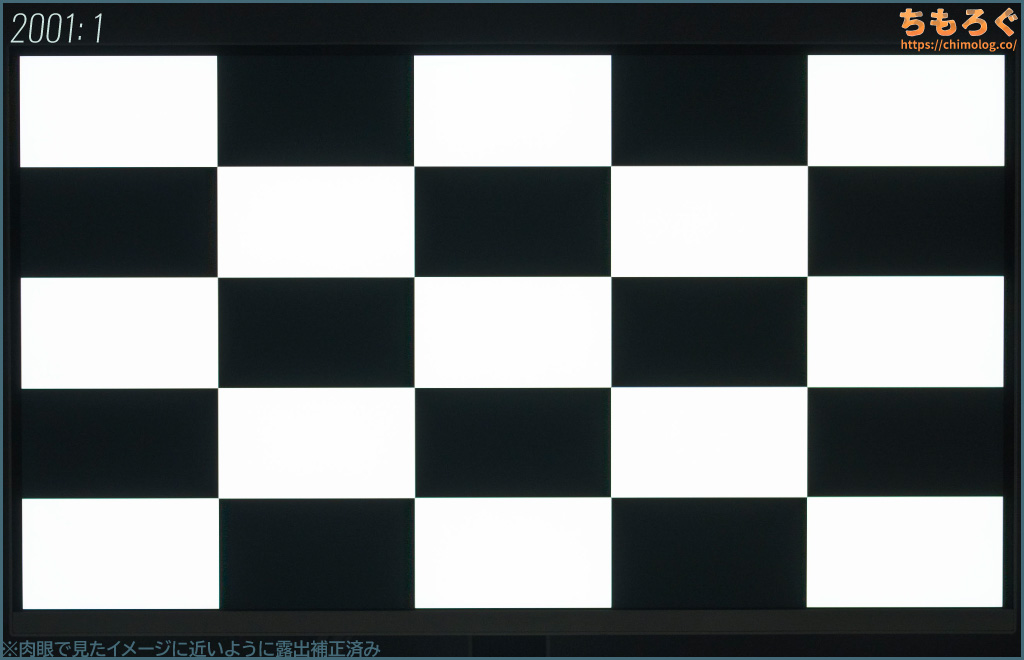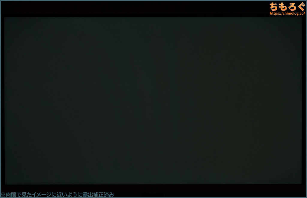 しかし、平均的なVAパネル程度のコントラスト比なので、白浮きがまだまだ目立ちます。