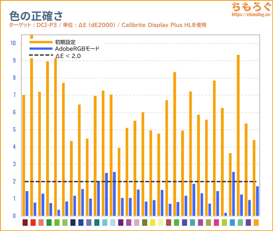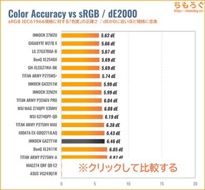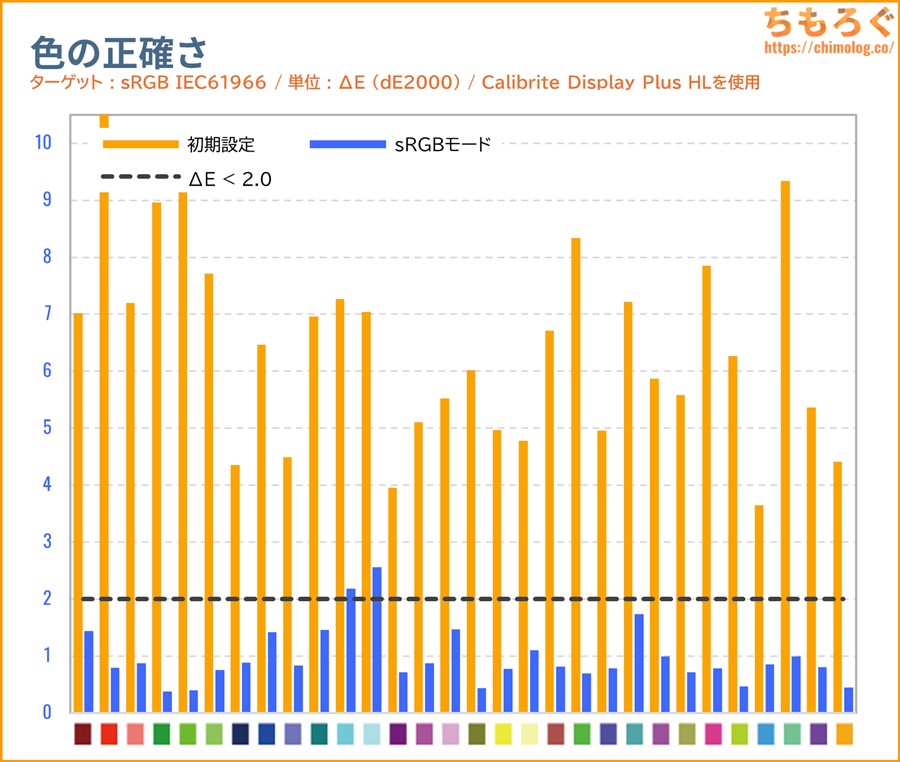 「sRGB」モードと色精度(dE2000)