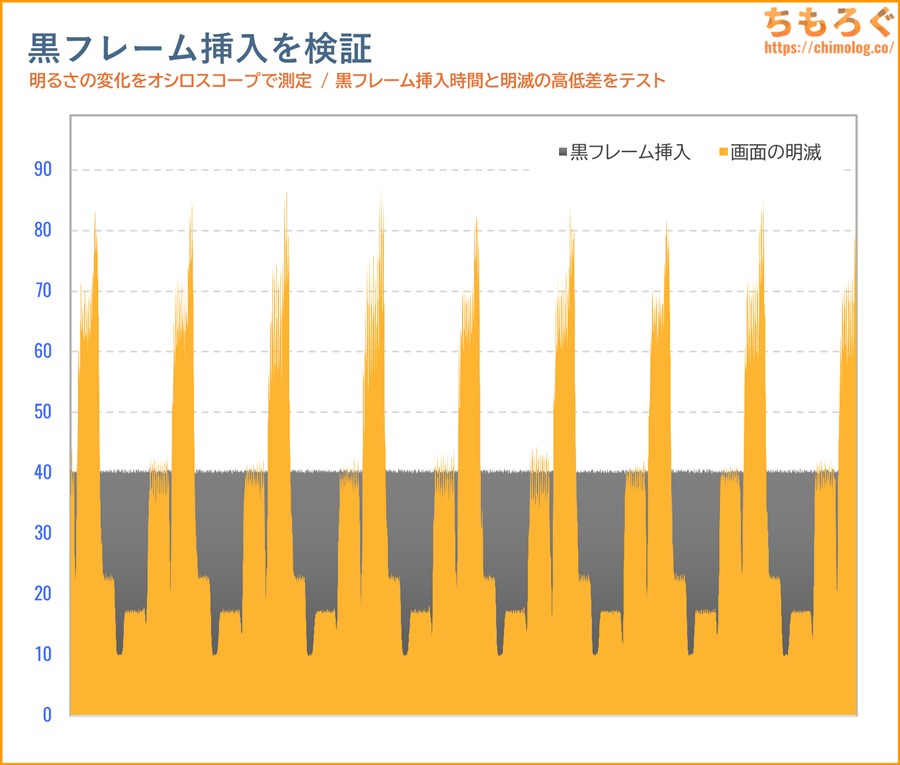 明るさの変化に対して忙しなく変動しますが、BenQアイケアの「Brightness Intelligence(B.I. Gen2)」と比較して、中程度の明るさまでの応答性がやや鈍い傾向あり。