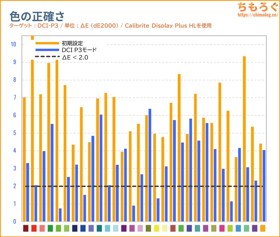 レポート記載どおり、本当に色精度が高いのか、実際に測定します。