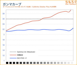 手動調整後のガンマカーブとグレースケール(色温度)グラフです。