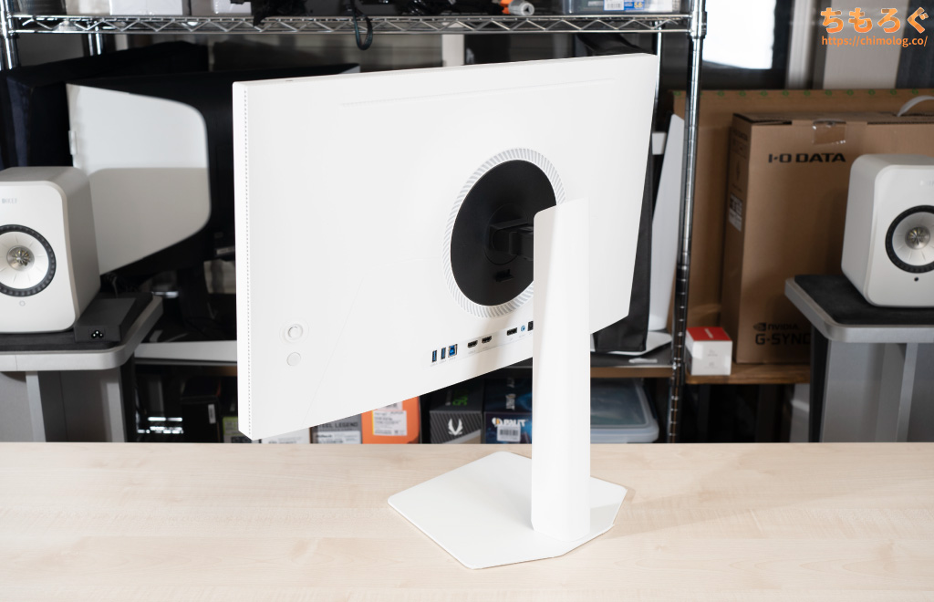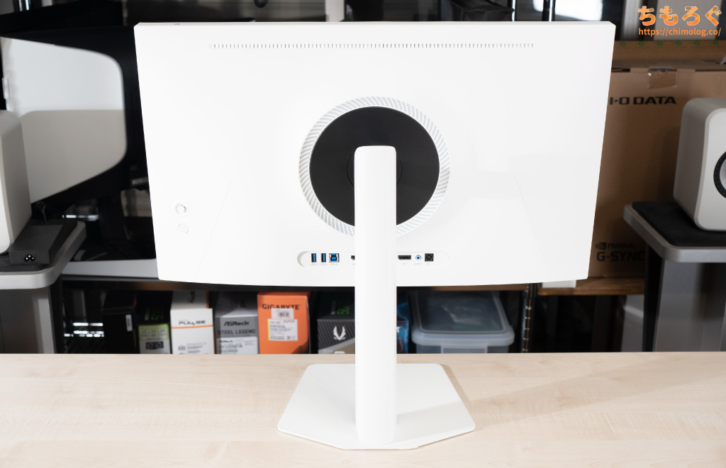 なお、背面にあるリング状のLEDが明るく光り輝きますが、OSD設定から消灯できます。