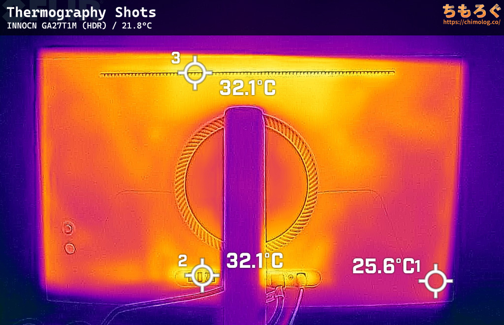 表面温度(サーモグラフィー)は、FF16(HDRモード)を約1時間ほど掛け続けてから撮影しました。