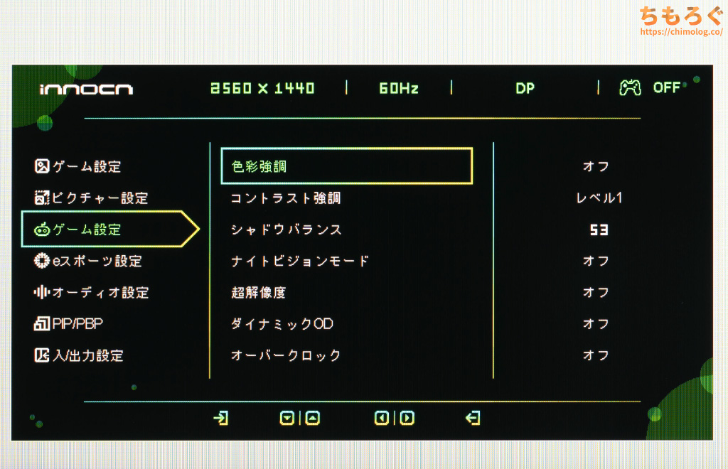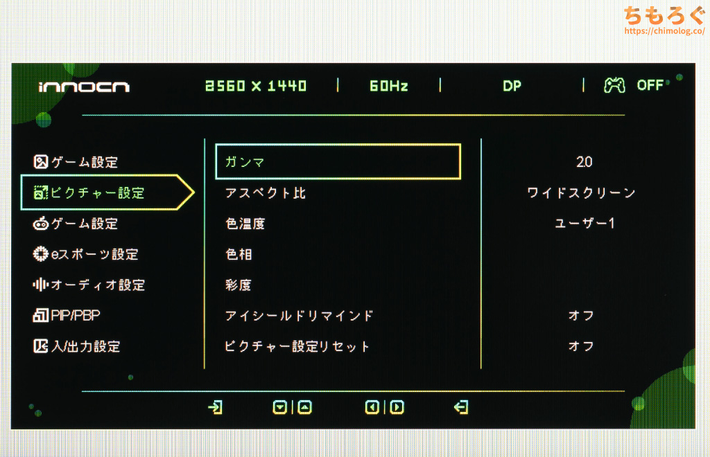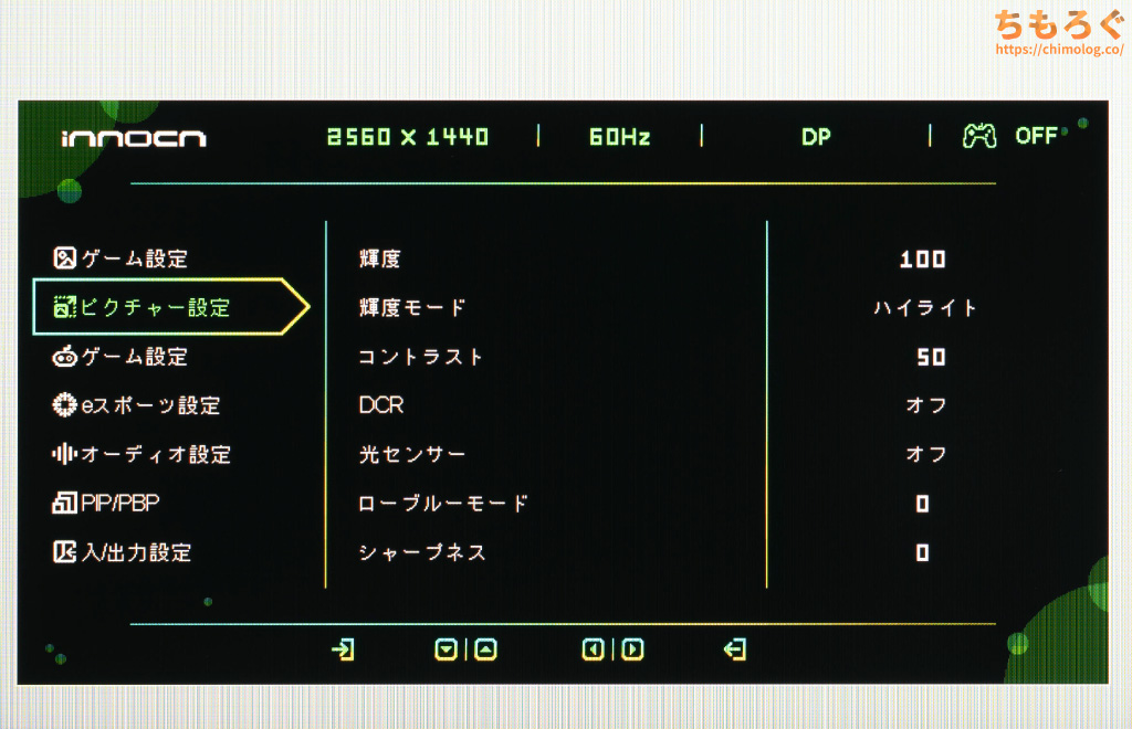 5方向ボタンがあるから設定にそこまで不便しないものの、設定値を大きく変更したいときに面倒です。