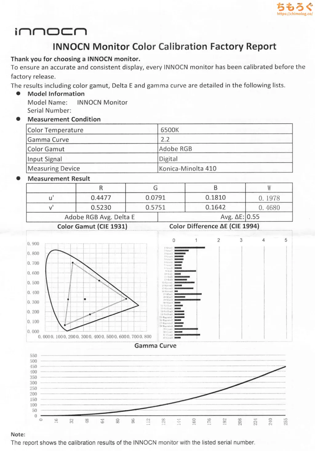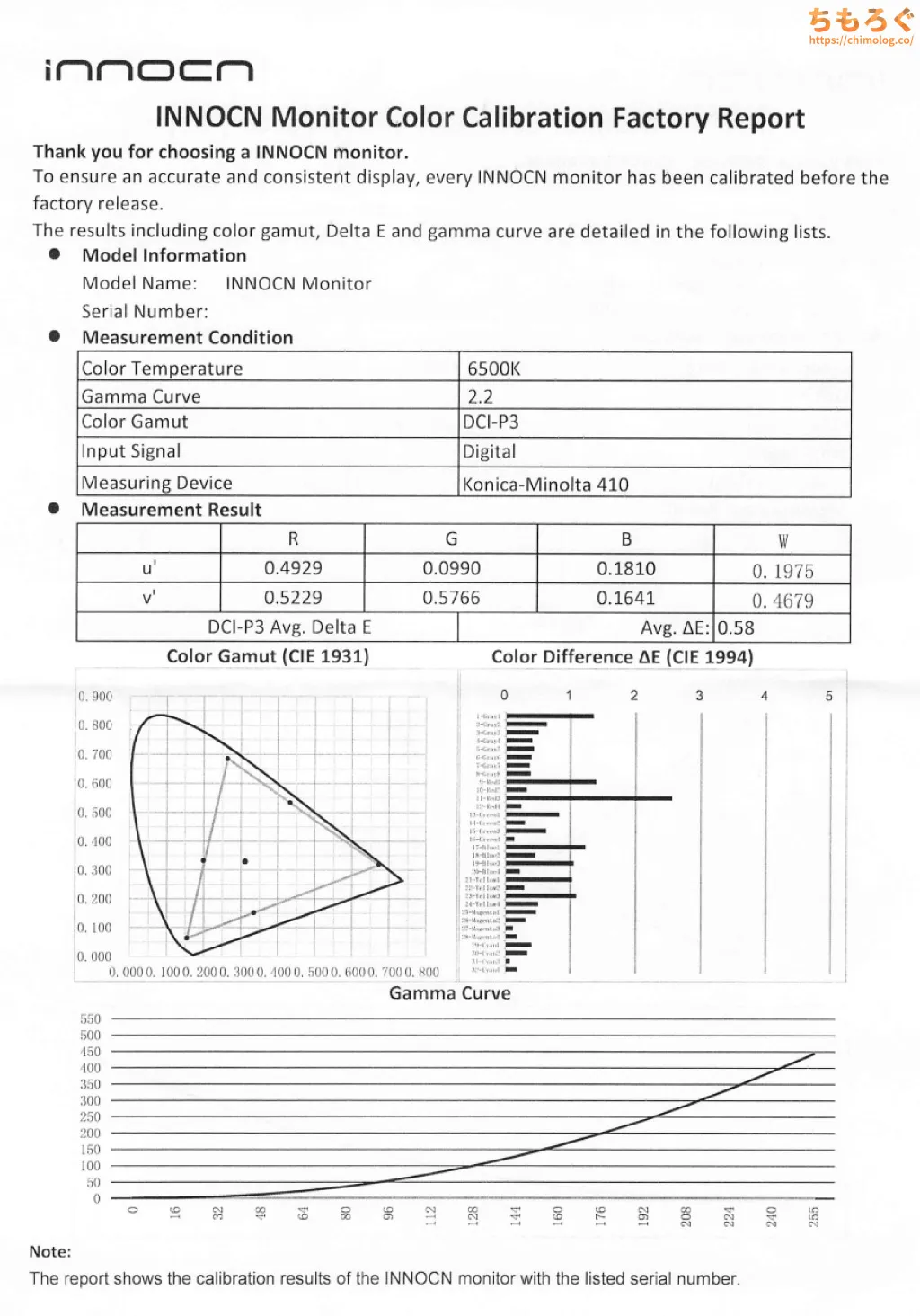 ただし、目視補正(メタメリズム障害の回避)を考慮しない、お飾りの校正レポートです。中華モニターに限らず、大手外資系メーカーも目視補正をしていないから、業界全体の問題です。