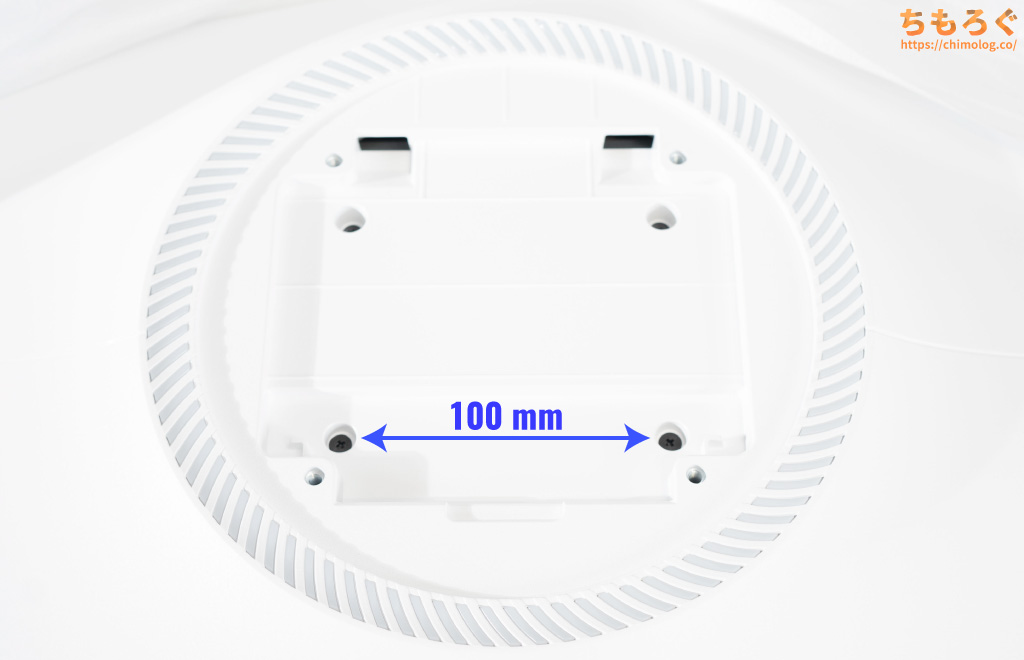 別売りモニターアームを取り付けるのに便利なVESAマウントは「100 x 100 mm」に対応します。