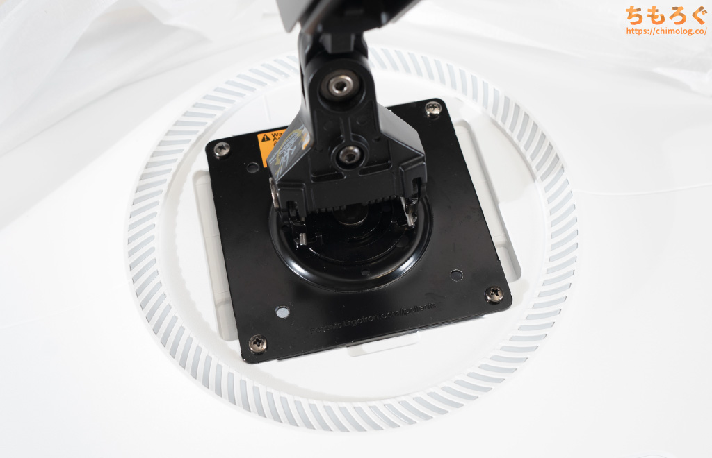 モニターアーム側に付属するネジを使って、エルゴトロンLXを正常に取り付けられます。