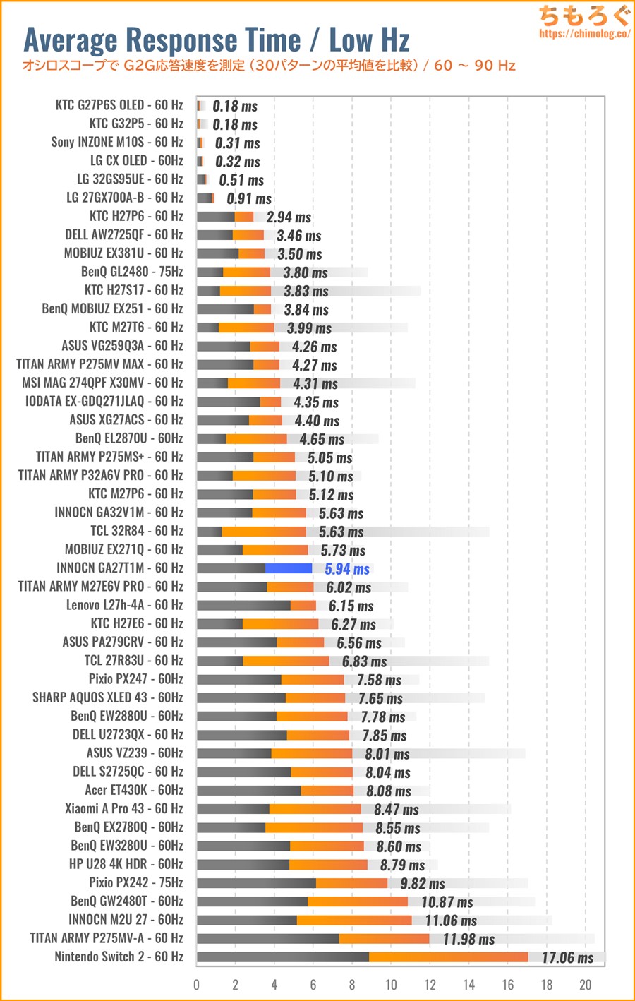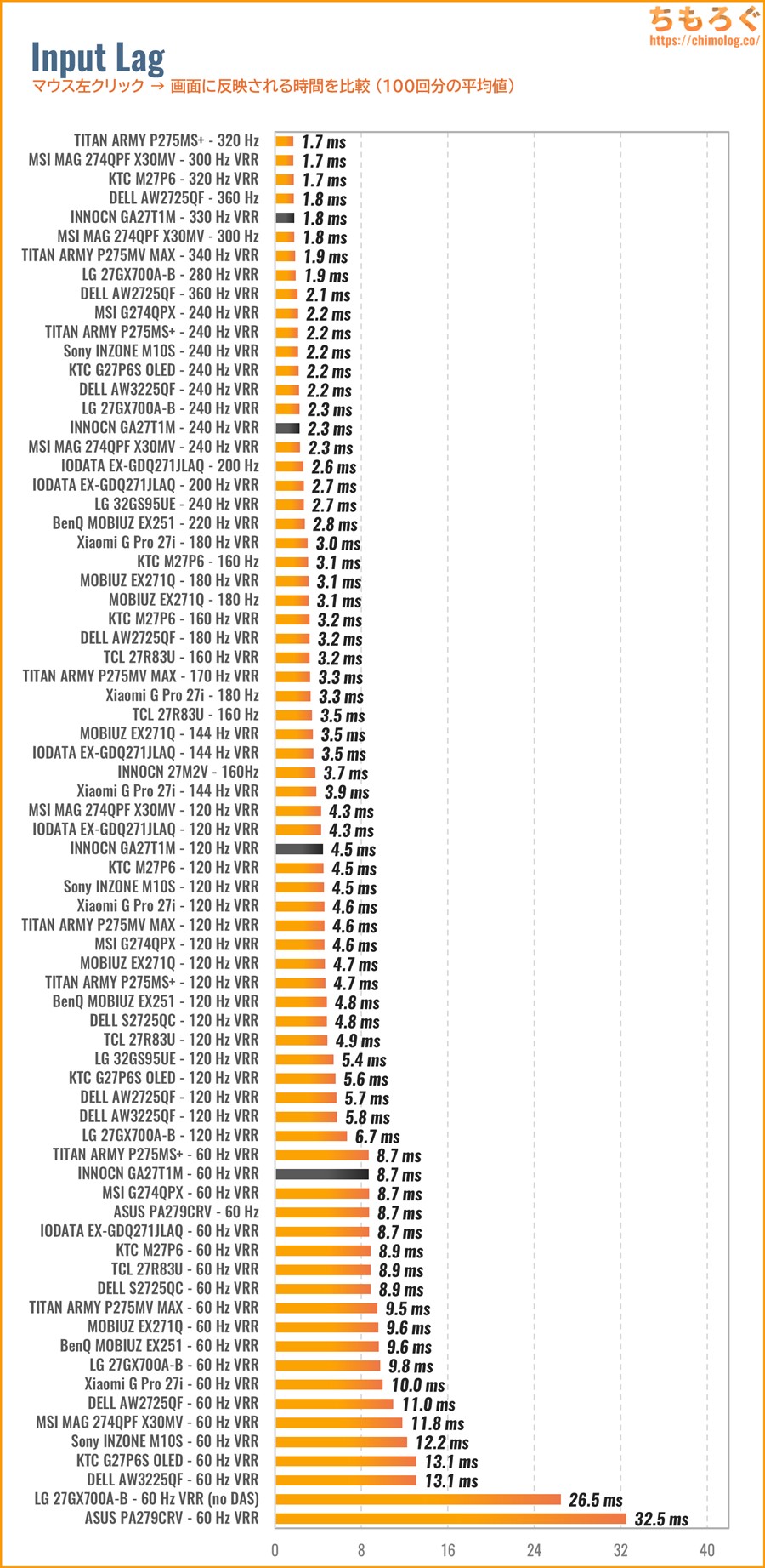もっと詳しく測定データや比較データを見れば、他の代替案にするか、このままINNOCN GA27T1Mで 即決するかヒントになるかもしれません。