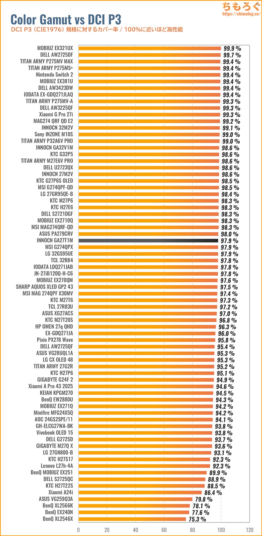| sRGBもっとも一般的な色域 | 99.9% | 99.7% |