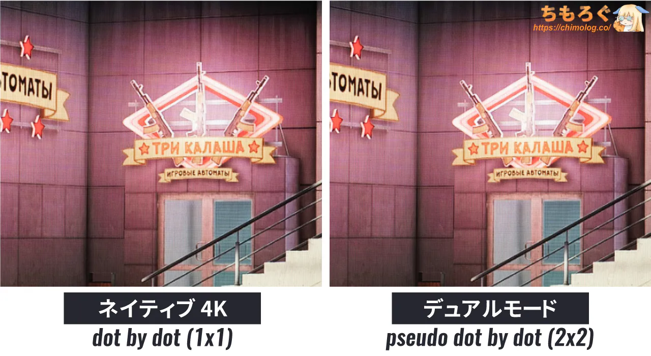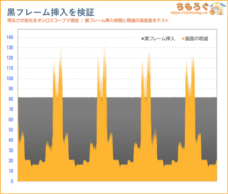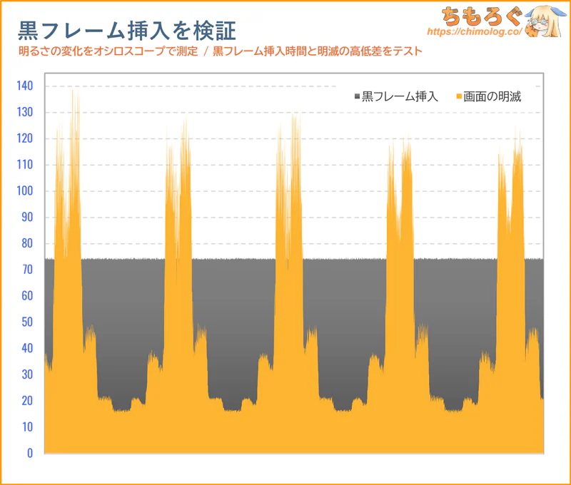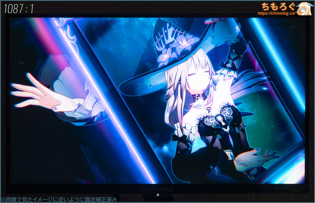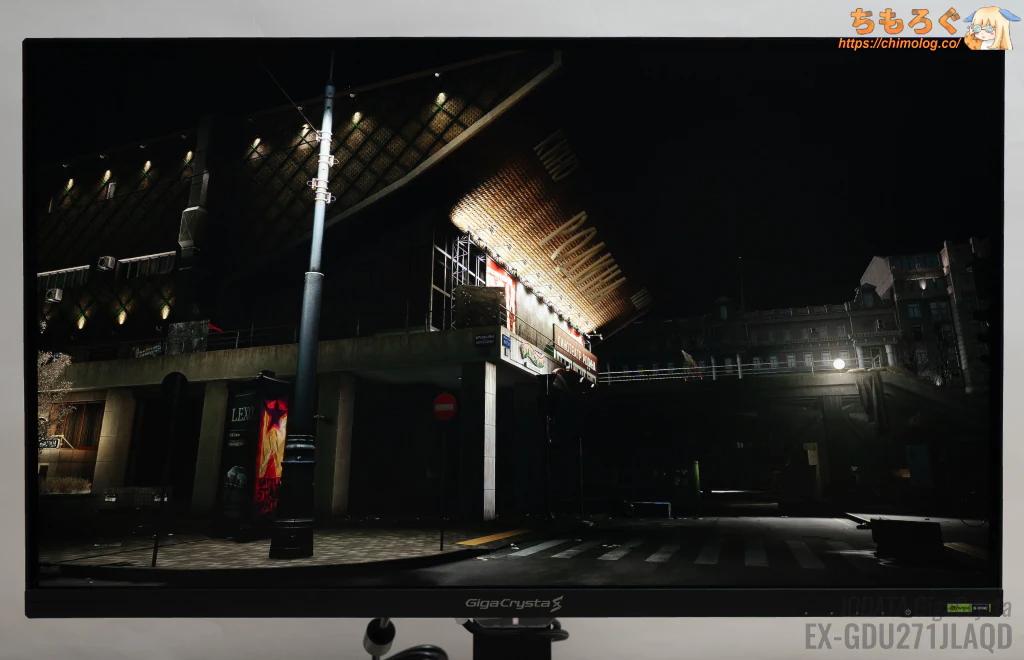 それでも真っ暗な部屋で眺めていると、白浮きしているのが見えます。OLEDパネル並と行かず、ベストケースでVAパネル相当の黒さが限度です。