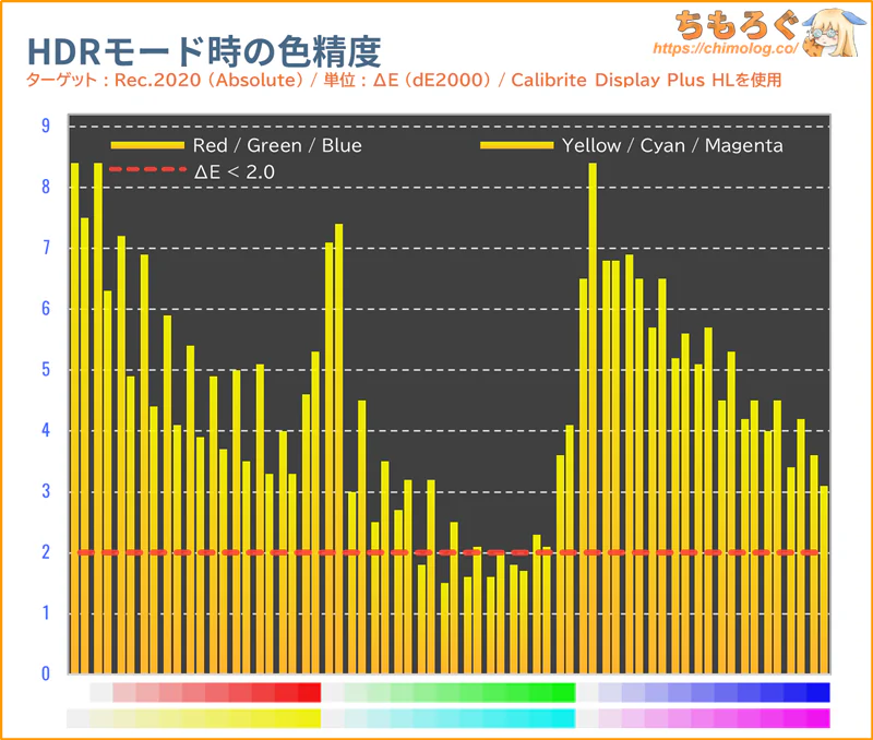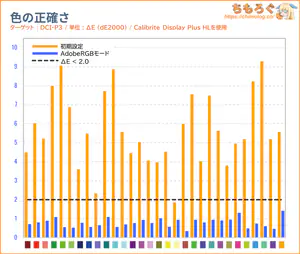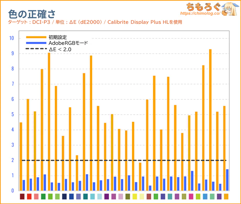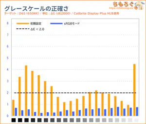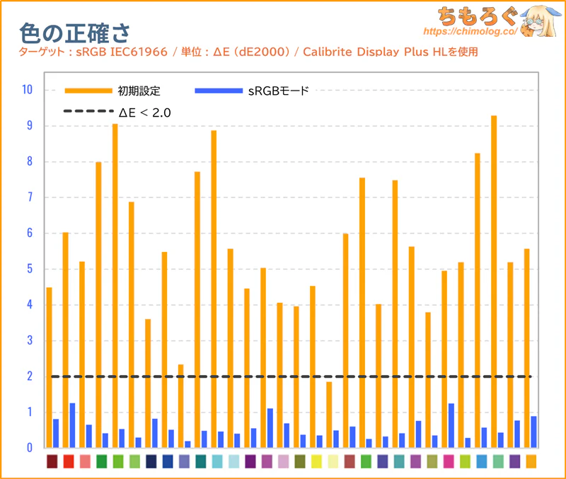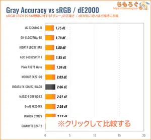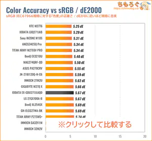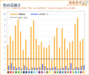 「sRGB」モードと色精度(dE2000)