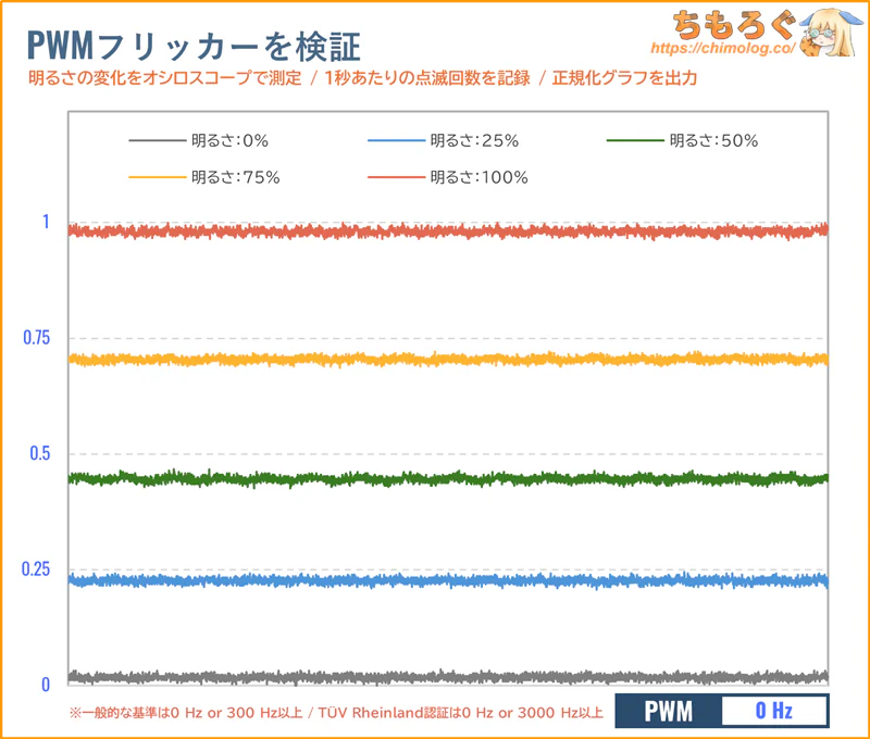 色が均一の静止画コンテンツを見ている時間が長いオフィスワークで、気にする人が多い「色ムラ」をチェック。