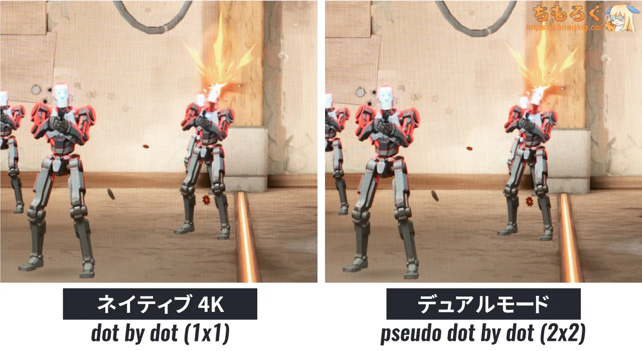 なお「Adaptive Sync」や「デュアルモード(フォーカスモード)」の設定まで各プリセットに保存されているから、モードごとにバラバラに保存すると、切り替えるたびに画面が数秒ほど暗転して面倒です。