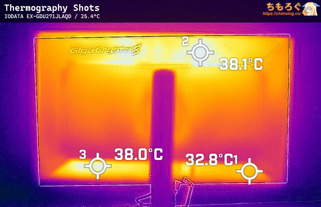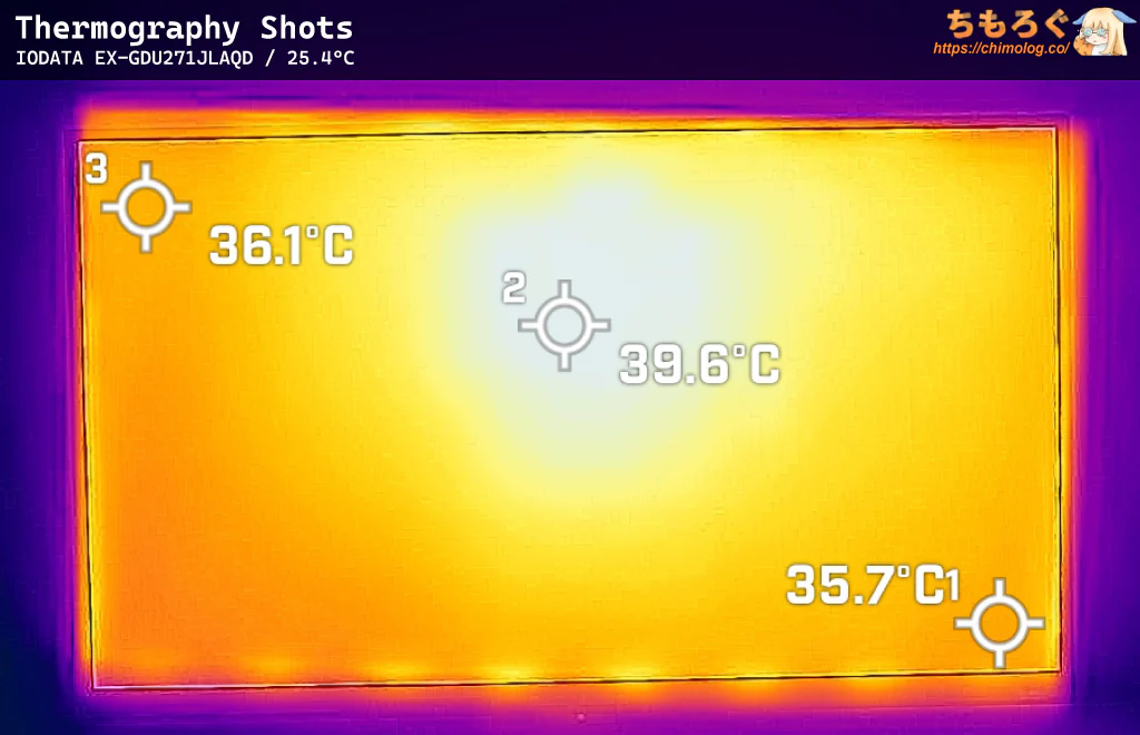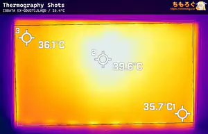 表面温度(サーモグラフィー)は、FF16(HDRモード)を約1時間ほど掛け続けてから撮影しました。