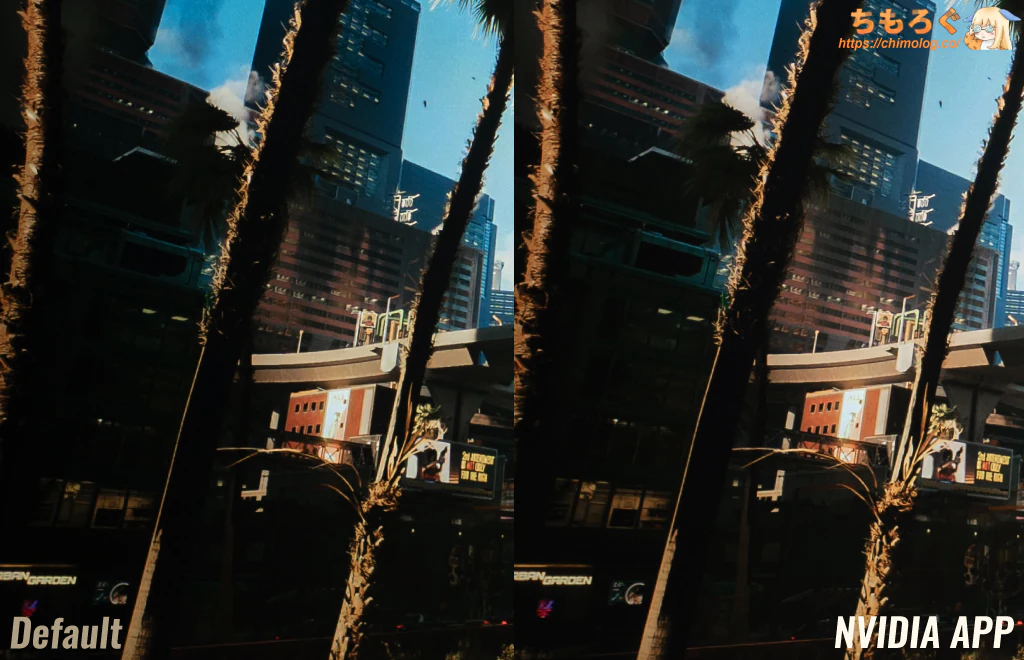 ふだんどおり、6504Kに合わせたモニターを見ながら、キャリブレーター(測定機材)も併用して調整した画質が右側です。コントラスト感を正しく修正し、ちょっとだけ寒色を入れました。