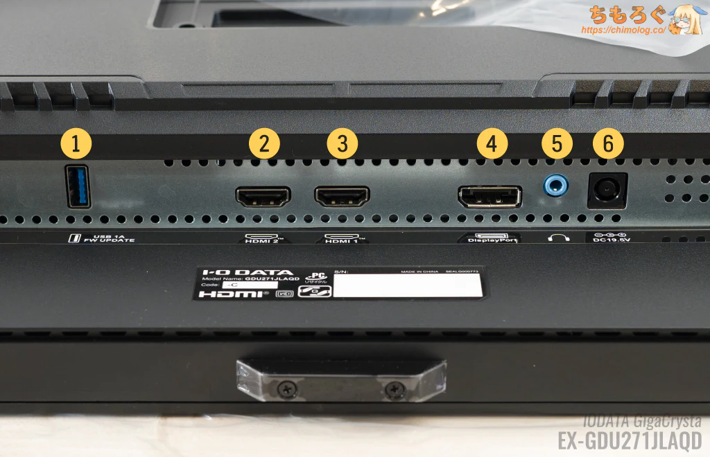 ここまでが同じで、EX-GDU271JLAQDにない機能がUSB Type-C(90 W)ポートです。特に、ノートパソコンでオフィスワークするような使い方なら、USB PDポートは役に立ちます。