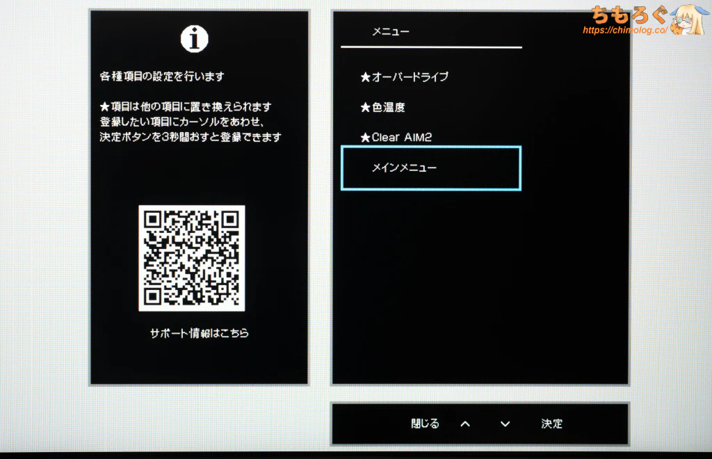 初めて使うゲーミングモニターがGigaCrystaなら多分慣れでなんとかなりそうですが、筆者のようにASUSやBenQライクのOSDに甘やかされていると、ちょっと辛いです。