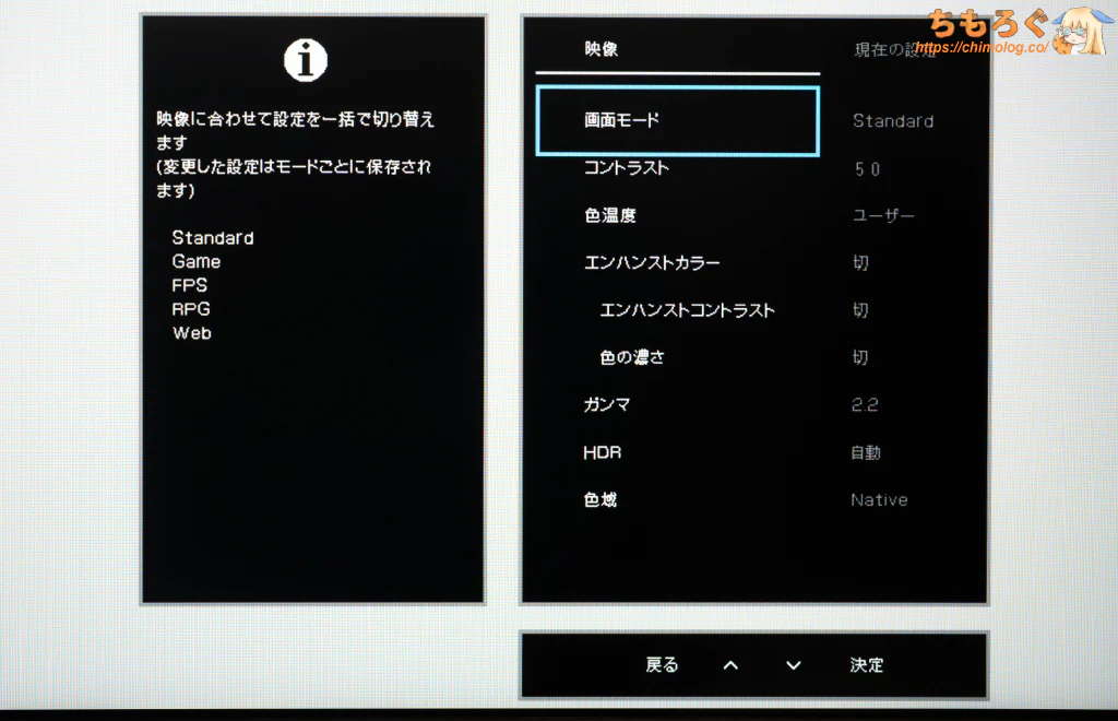 HDRモードでゲームやコンテンツを楽しむ映像派におすすめ。