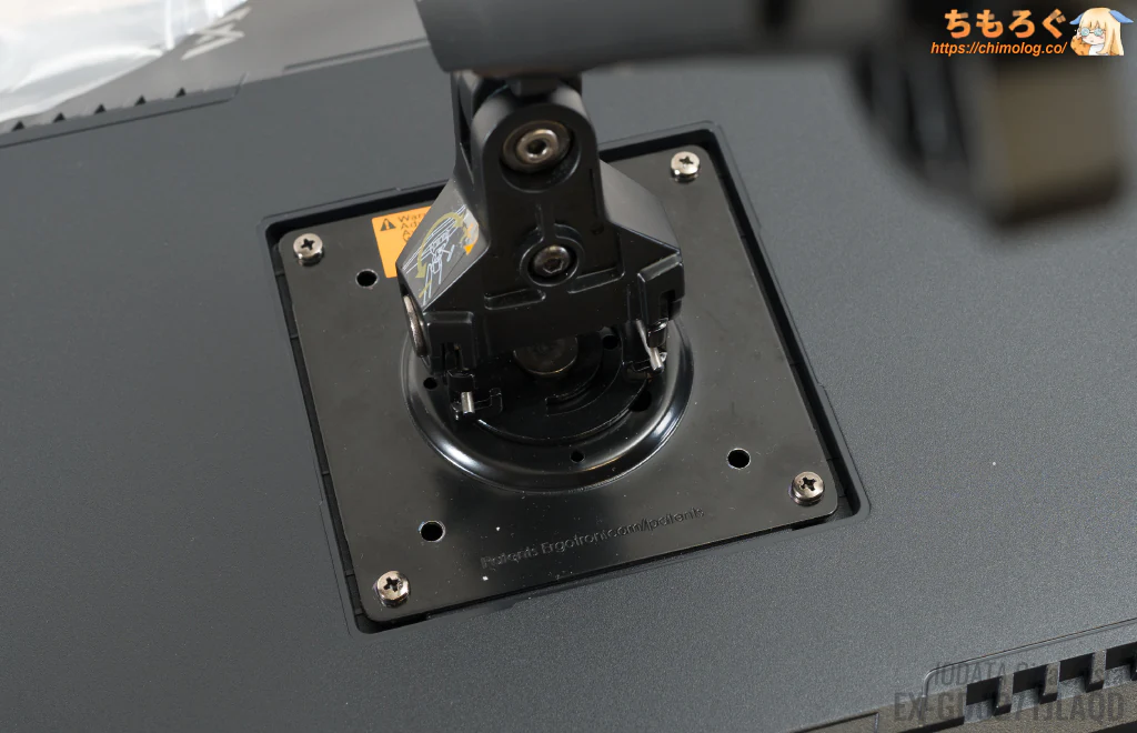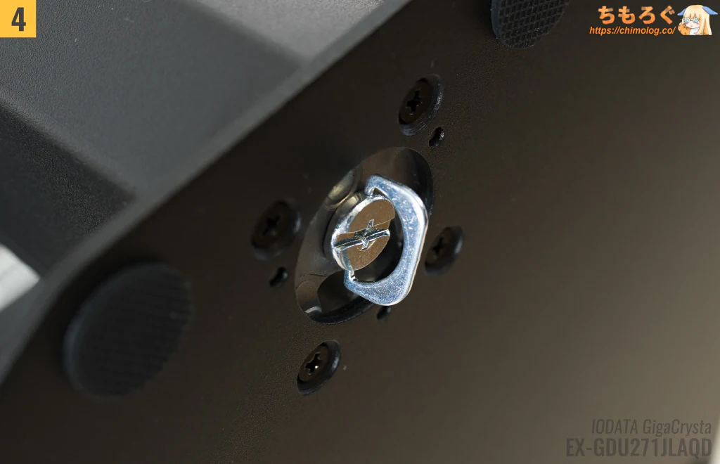 モニターアーム側に付属するネジを使って、エルゴトロンLXを正常に取り付けられます。