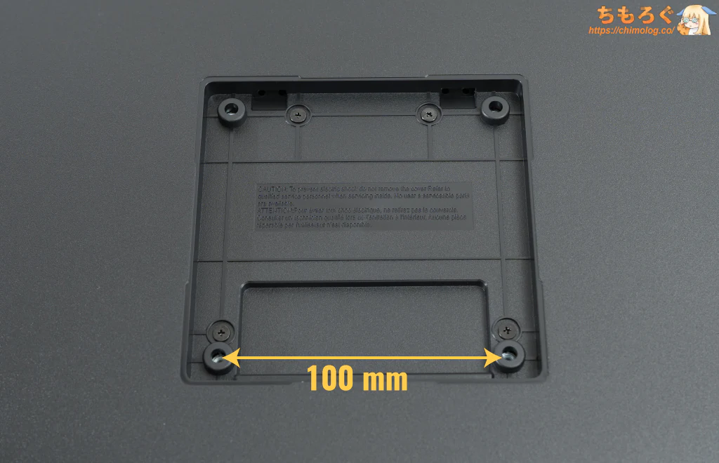 別売りモニターアームを取り付けるのに便利なVESAマウントは「100 x 100 mm」に対応します。