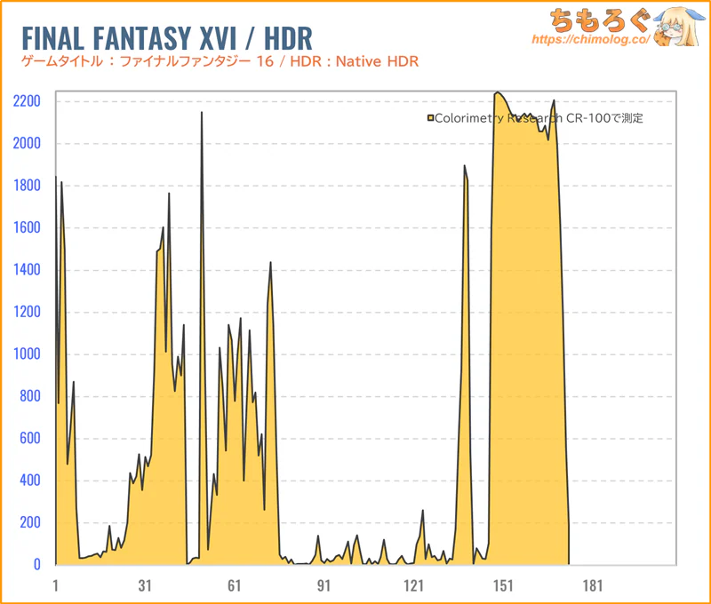 | HDRコンテンツの再現性 Display HDR 1400認証に合格できる性能です。Mini LEDモニターとしてトップ級の明るさを誇り、輝度の安定性も優れます。明るさ(PQ EOTF)精度は及第点ですが、NVIDIA Appでかんたんに修正可能です。明るいHDRをきちんと明るく表示でき、おおむねHDRコンテンツの再現性が高いです。 |