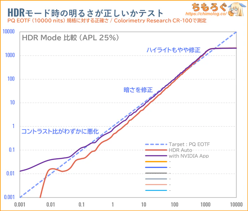 ついでにHDRのPQ EOTF追跡を改善するか他社みたいに