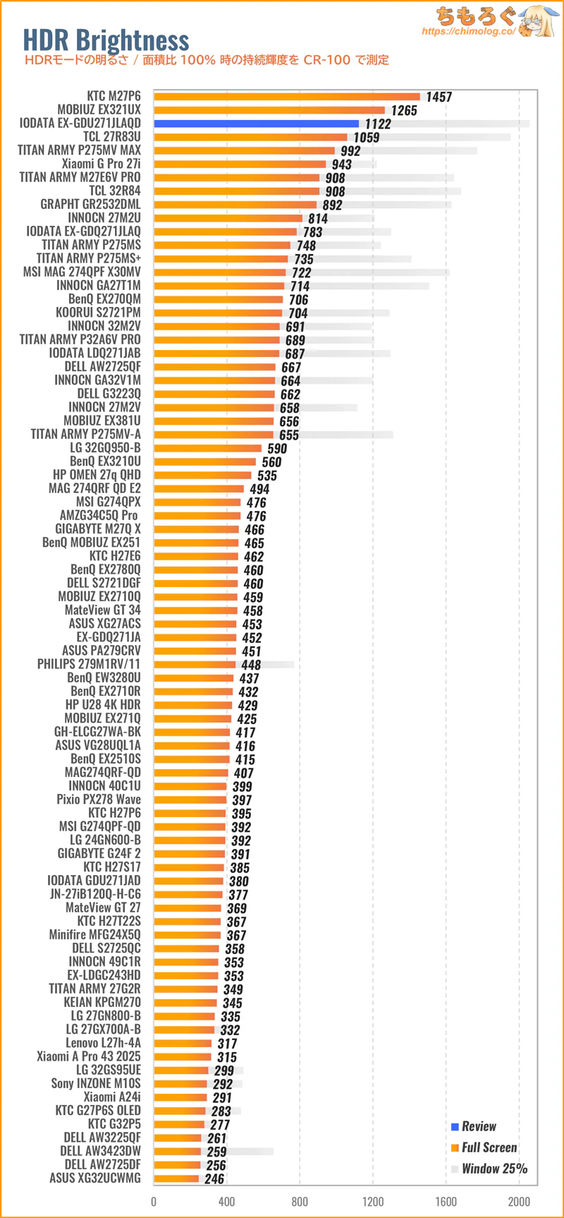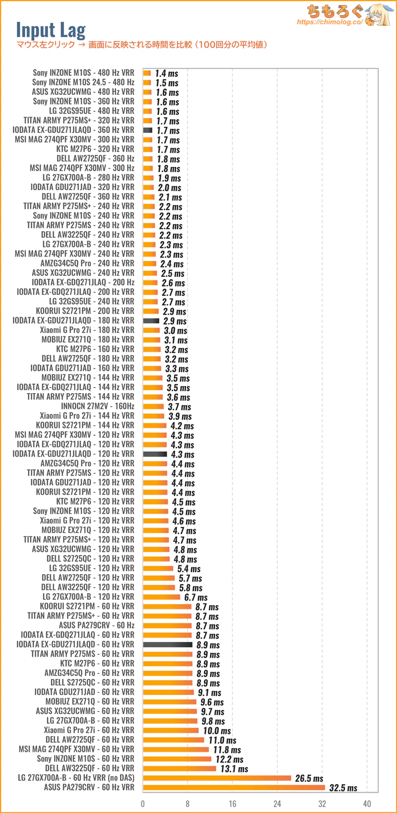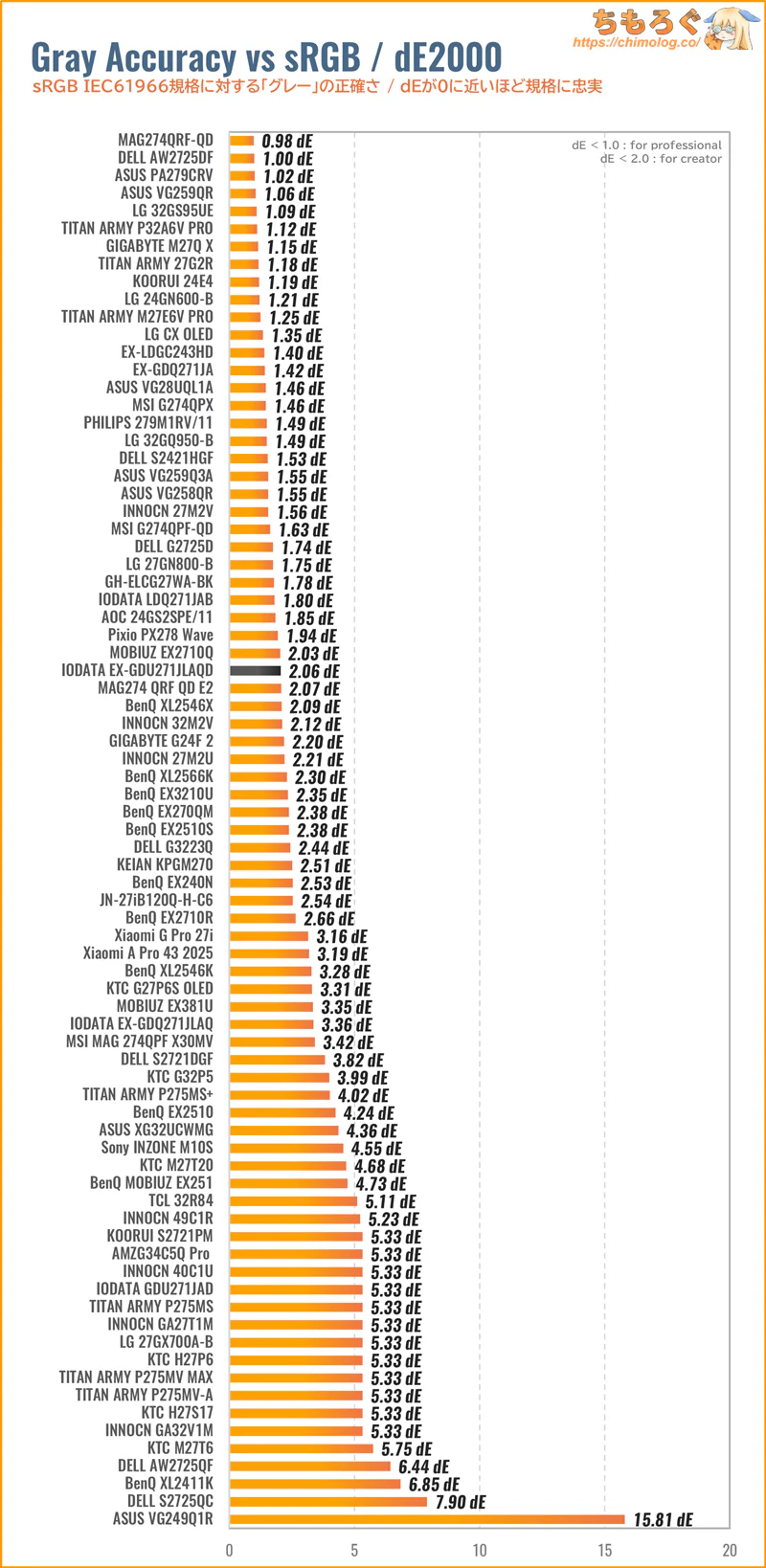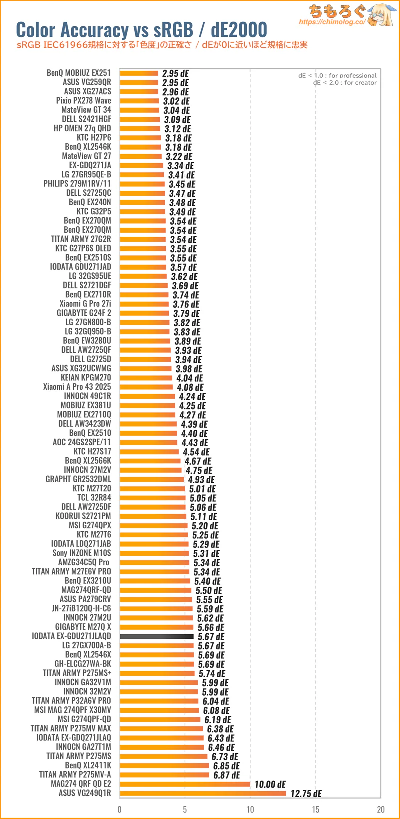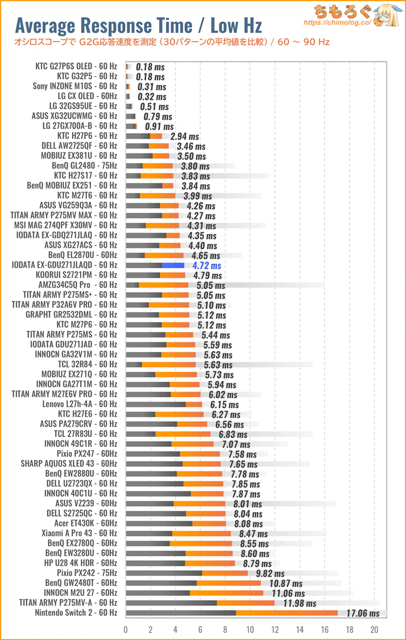 もっと詳しく測定データや比較データを見れば、他の代替案にするか、このままIODATA EX-GDU271JLAQDで即決する かヒントになるかもしれません。