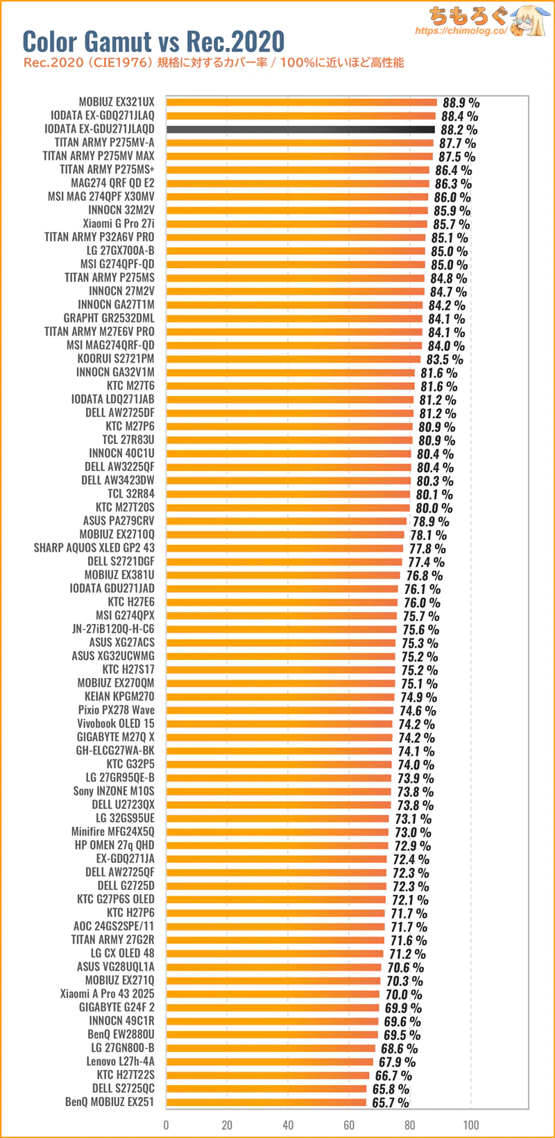 | 色域カバー率(CIE1976) | ||