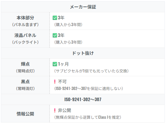 • メーカー保証3年(無輝点対応)