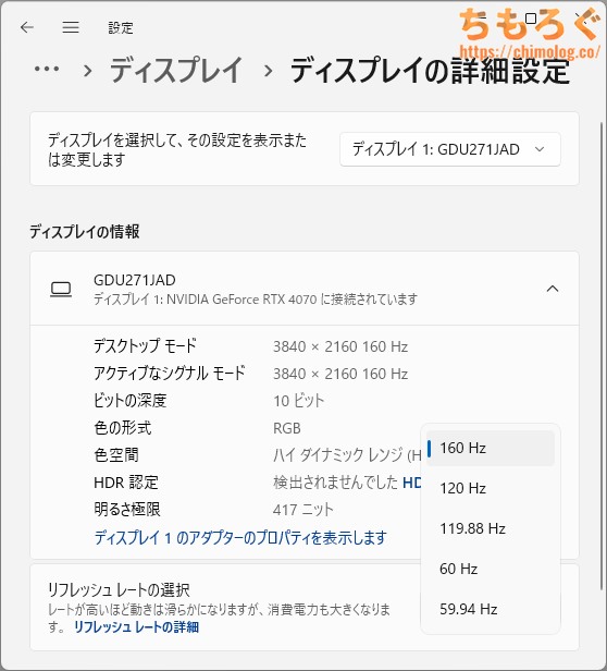 IODATA EX-GDU271JAD:これ1台でフルHD~4K 160Hz対応【二刀流DFRモード】