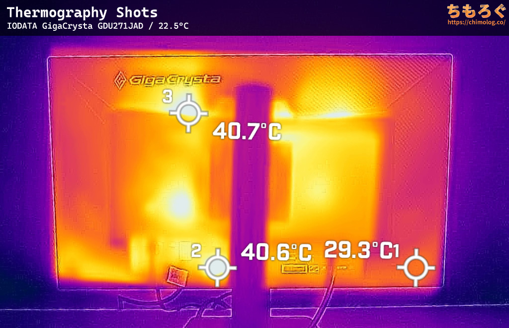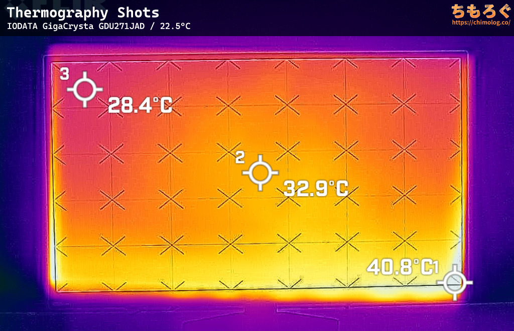 表面温度(サーモグラフィー)は、FF16(HDRモード)を約1時間ほど掛け続けてから撮影しました。