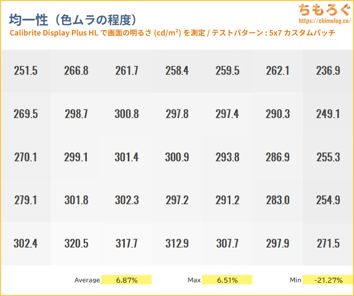 • パネルの均一性が普通