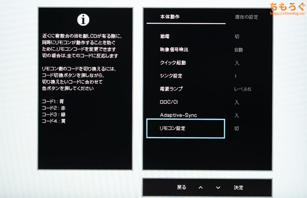 ただし、赤外線センサーが画面の奥の方にあるせいで、下の方からリモコンを向けないと反応が悪いです。リモコンとOSDメニューのレスポンス(遅延)もワンテンポ遅れていて、若干ストレスを感じます。
