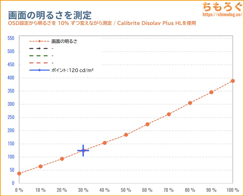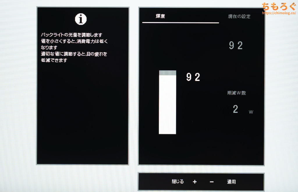 ※画面の明るさは好みに合わせて調整してください。明るさ92%だと約350 cd/m²前後に達し、人によっては眩しく感じるレベルです。