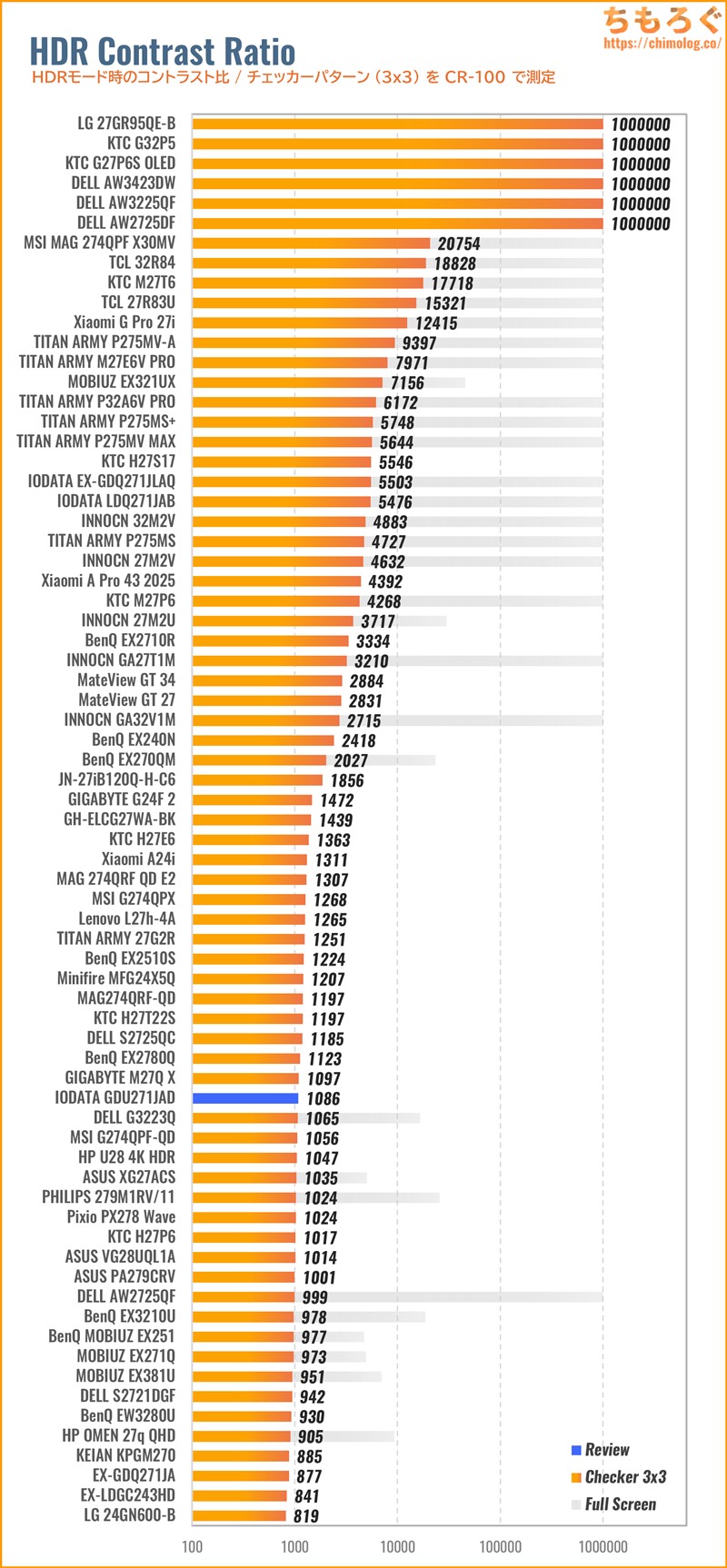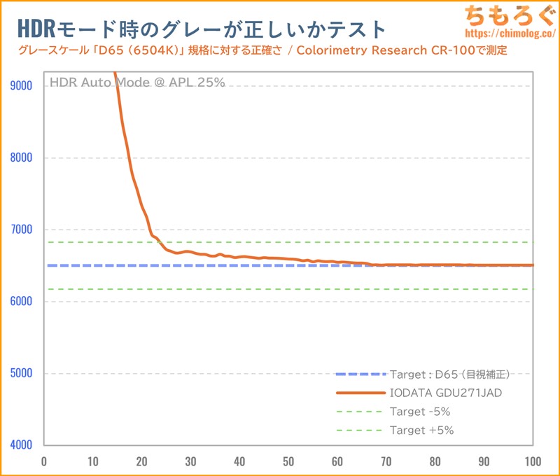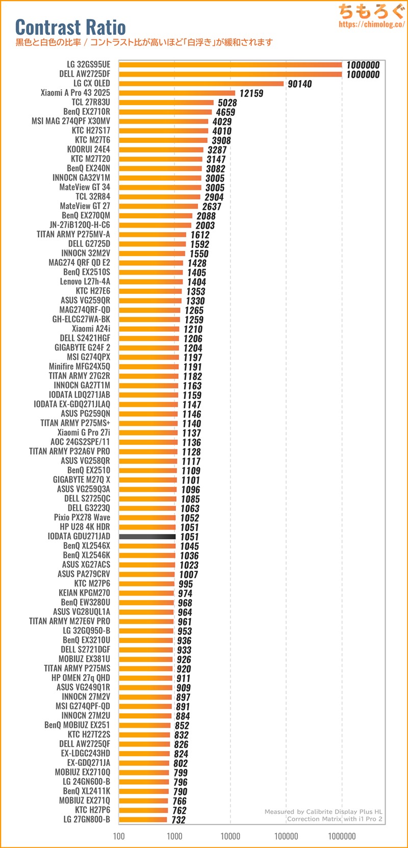 以前レビューした「GDQ271JLAQ」と同じ傾向です。なぜ、IODATAがガンマカーブを下げ続ける色合いを好むのか・・・よく分からないです。