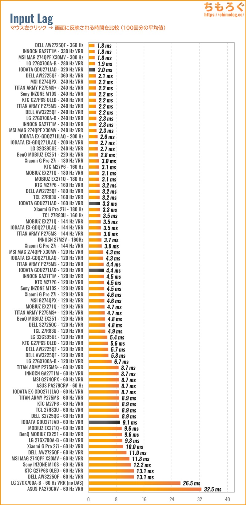 • 入力遅延が非常に少ない