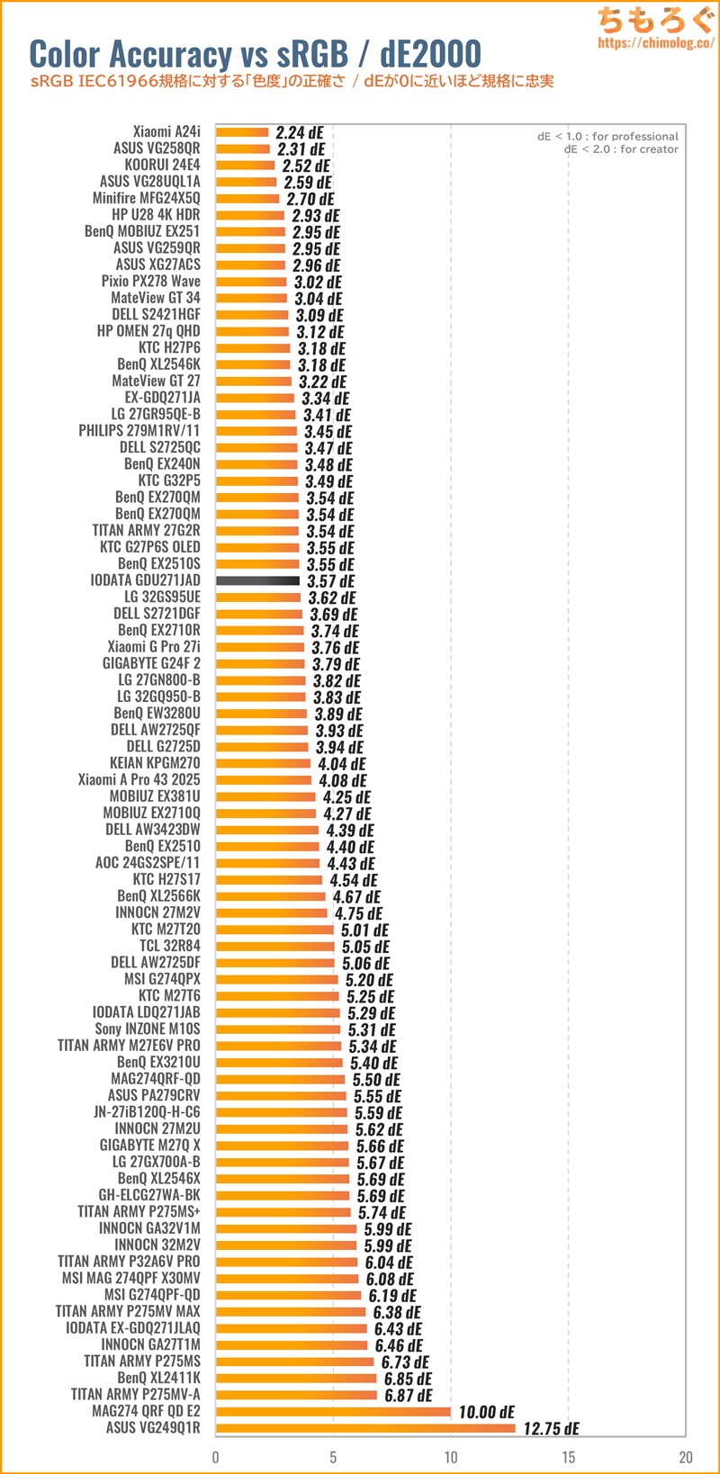 ちもろぐでは、2種類の測定機材を使って今回レビューする「EX-GDU271JAD」の画質を深堀りします。