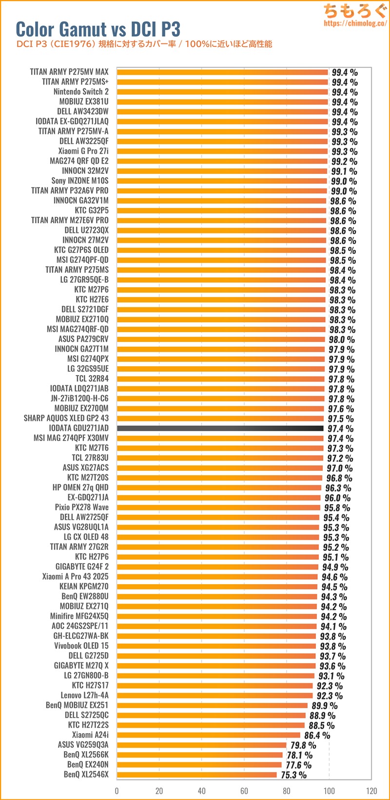 • 色域が十分に広い(DCI P3:97%)