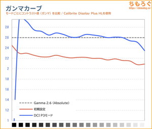 手動で調整後のガンマカーブ手動で調整後の色温度