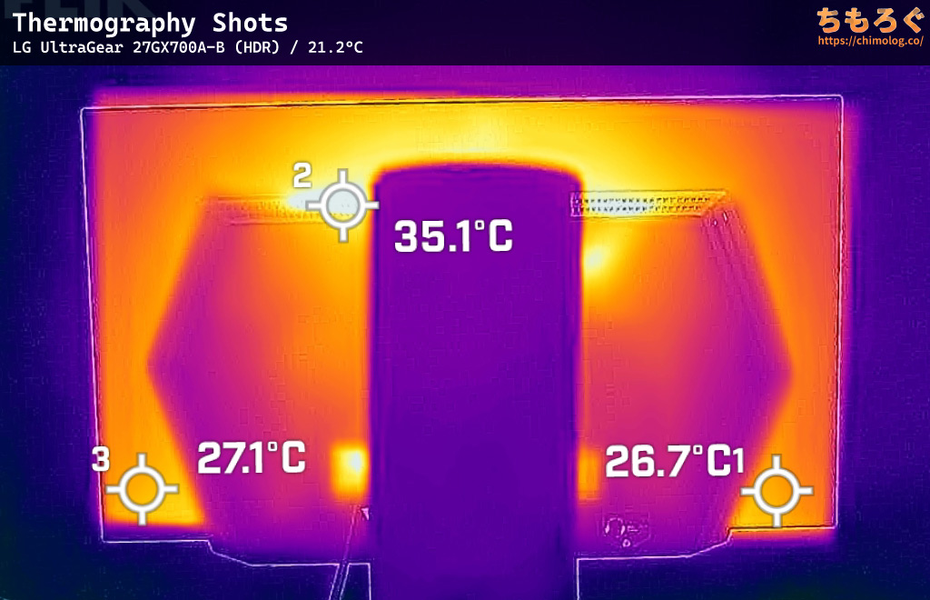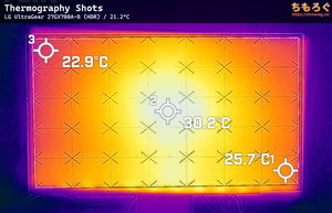 表面温度(サーモグラフィー)は、FF16(HDRモード)を約1時間ほど掛け続けてから撮影しました。