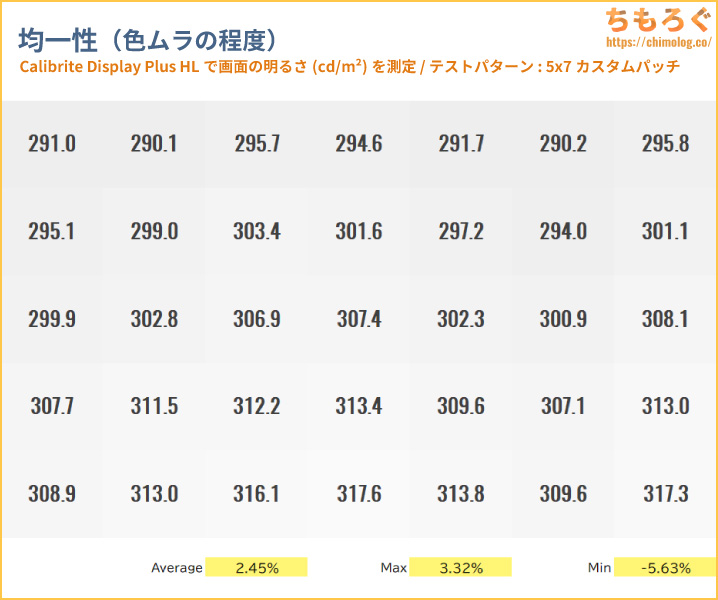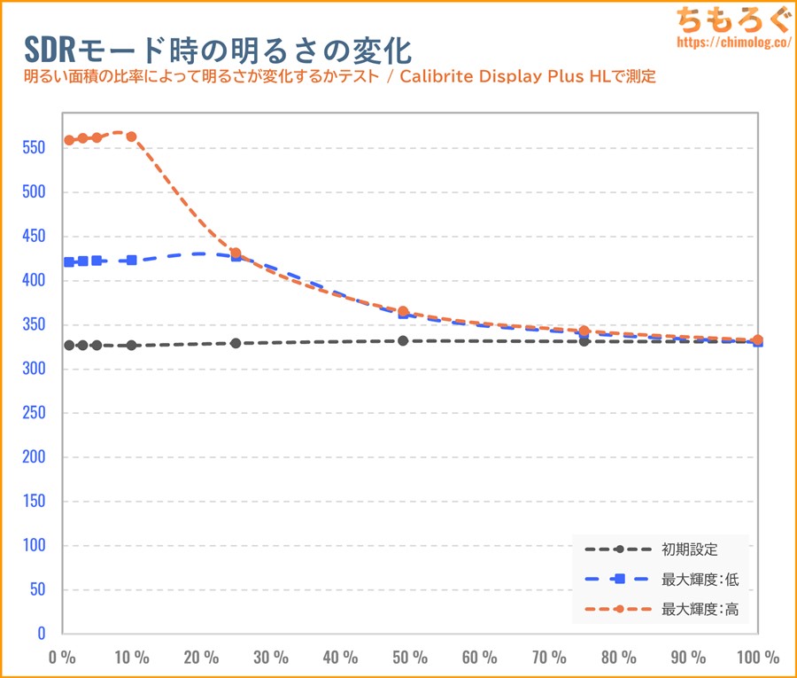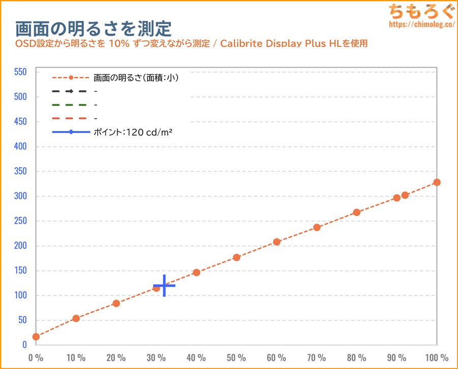 ※画面の明るさは好みに合わせて調整してください。明るさ100%だと約320 cd/m²前後に達し、人によっては眩しく感じるレベルです。