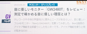 実質フリッカーフリー対応、やや透過性の高いノングレア加工で評価点あり。「sRGB」モードもそこそこ正確(ΔE < 2.0)です。ただし、文字ぼやけ(テキストフリンジ)がまだわずかに見つかります。