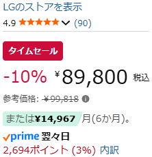 今回のレビュー機はAmazonタイムセール価格(約8.7万円)で買いました。個人的に待望だった「タンデムOLED」が意外と安く買えて満足です。では、以下より測定レビューです。