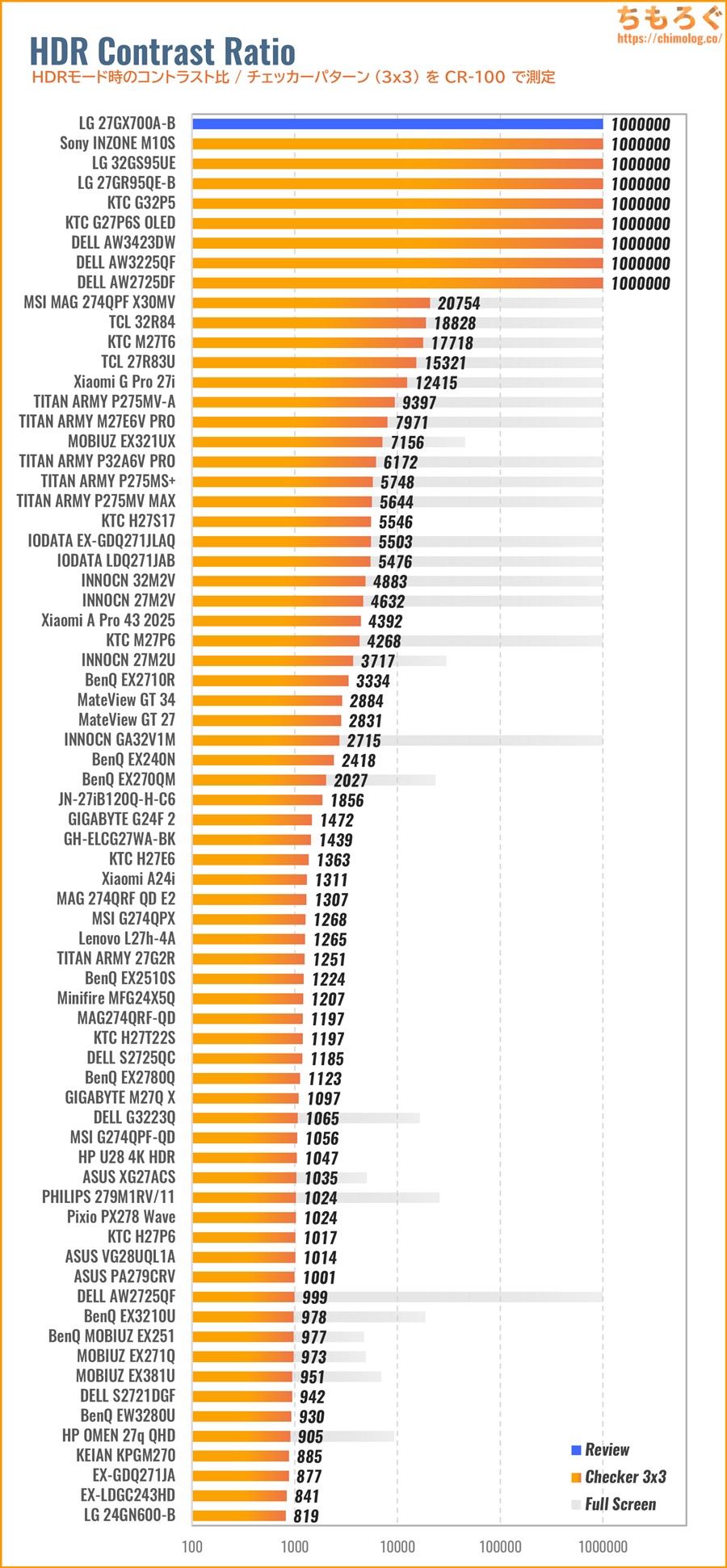つまり、旧世代のQD-OLEDやMLA OLEDパネルでは、Tandem OLEDを代替できません。手頃な価格設定も加味すると、LG 27GX700A-Bの代替案はほぼないです。